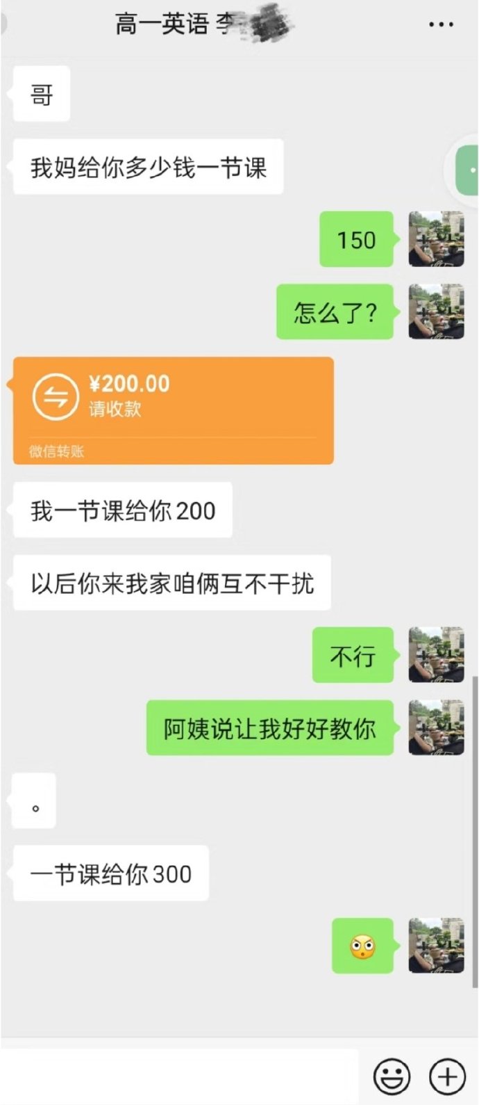他们家很有钱,少爷说一节课给我300,但是这钱我不能收啊