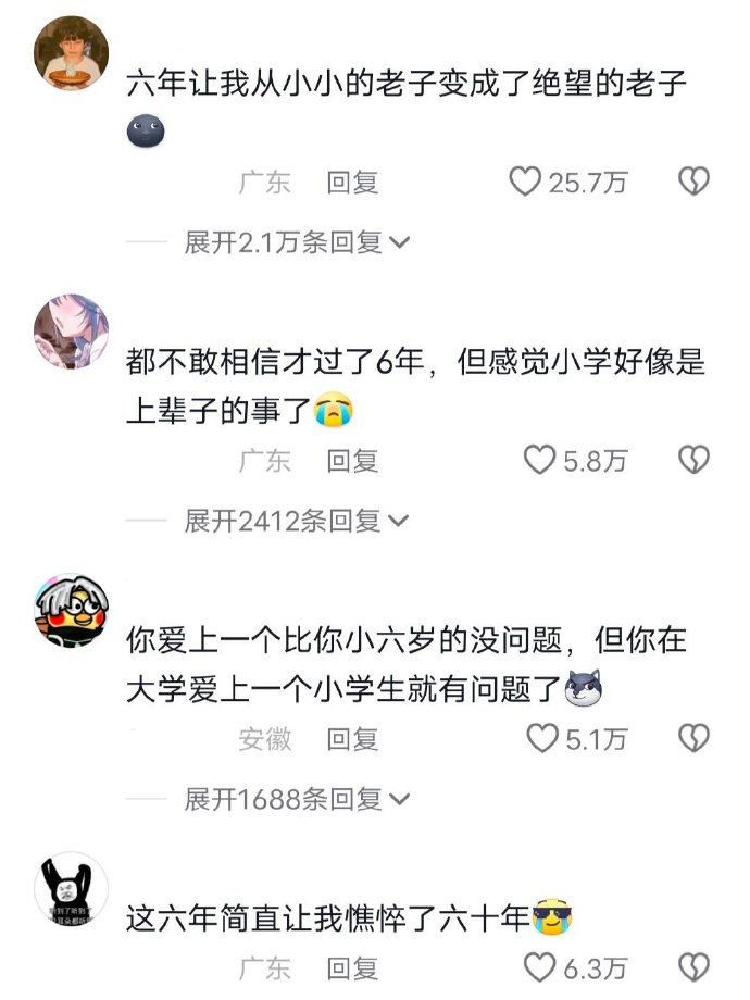 原来小学到大学只有六年,感觉过了半辈子