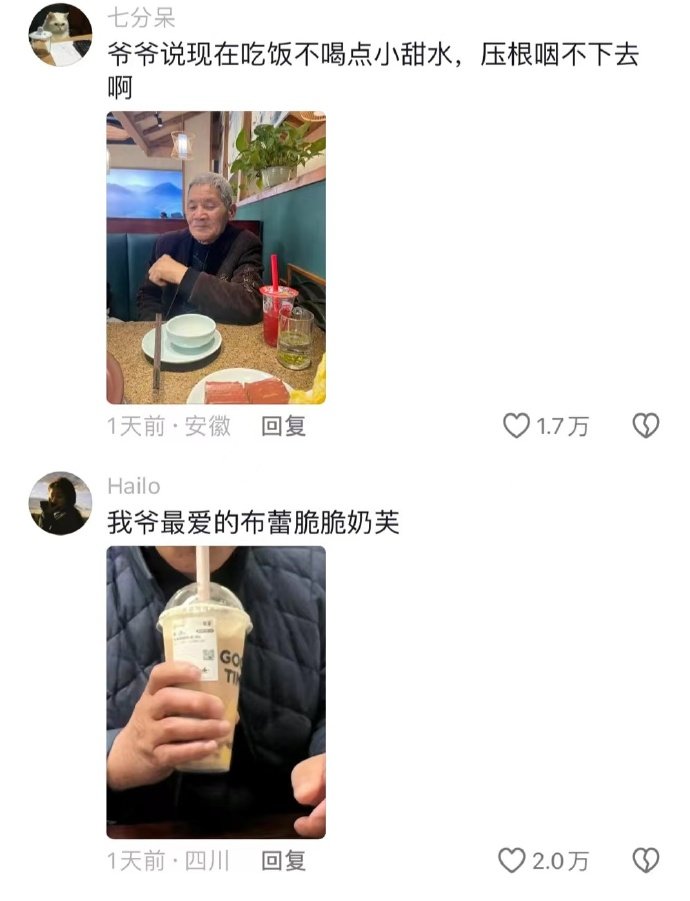 爷爷说现在吃饭不喝点小甜水,压根咽不下去