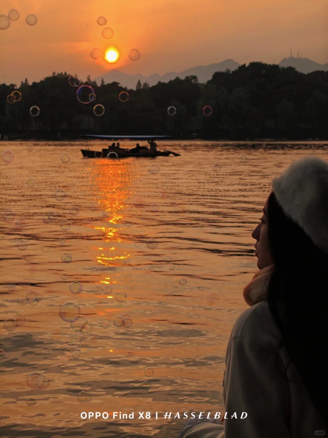 OPPO直出|沿着晚风拍下杭州西湖日落的瞬间 秋日的西湖最是温柔自在 落日沉溺于橘色的海 晚风沦陷于赤诚的爱 秋天的杭州温度适宜 走走逛逛在西湖畔找一长椅 看金黄的夕阳落下 抬手就出片 光影交错的黄昏时刻 抓拍氛围感 . 📷设备:OPPO Find X8 📍地址:杭州市西湖区西泠桥/孤山路 🚌公交:WE1314路 ⏱时间:杭州近期绝佳日落观赏时间在5点15左右,建议5点前抵达慢慢等待 -