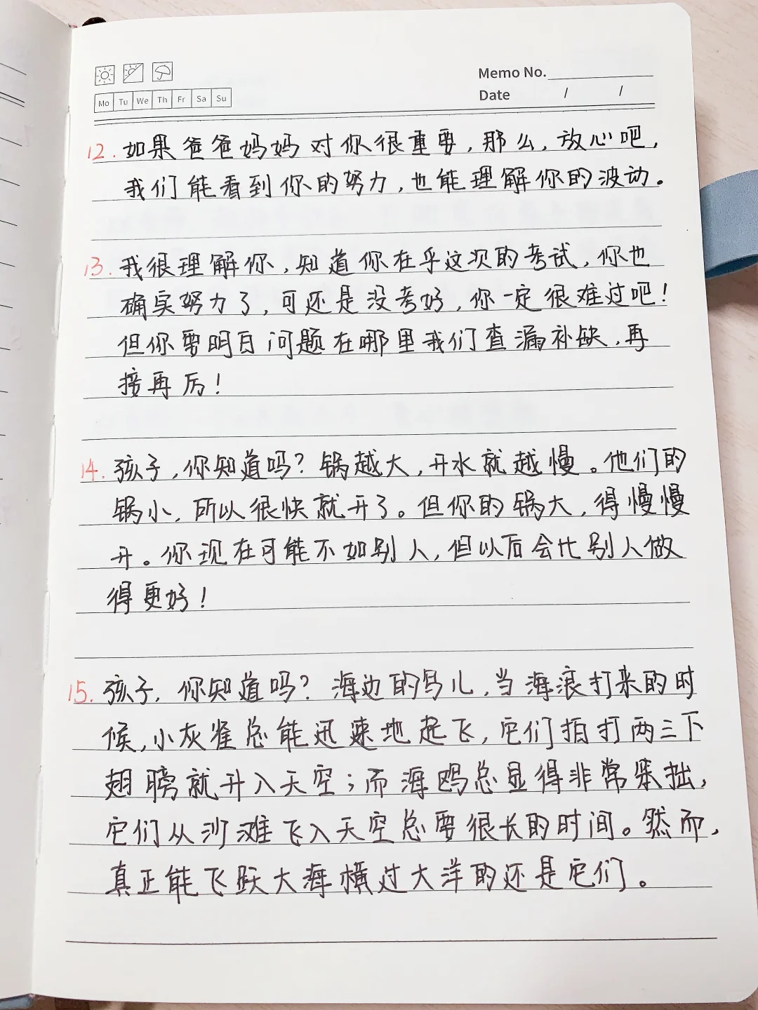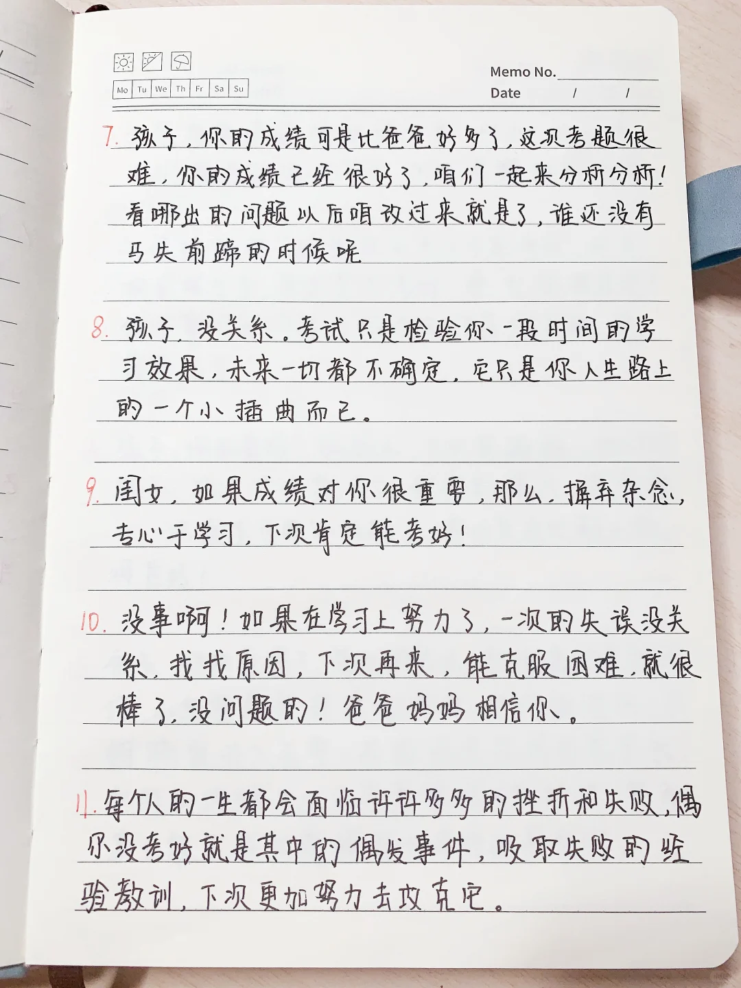 [星R]没有一个努力的孩子不想有个好成绩‼️ 期中考试成绩出来了,对于没考好的孩子,我们应该怎样沟通呢❓ [星R]一些安慰和鼓励,分享给大家! 心平气和的和孩子分析到底差在哪里。当孩子被理解时,才会走出困扰,思考怎么调整自己,去想办法取得好成绩!孩子才能有逆袭的一天![派对R] [星R]通过这些话,我想告诉孩子,无论你考好还是考坏,我随时都在你的身后,相信你,爱着你❤️ [樱花R]育儿育己育心,每天学习一点,努力做一个懂孩子的妈妈[集美R]