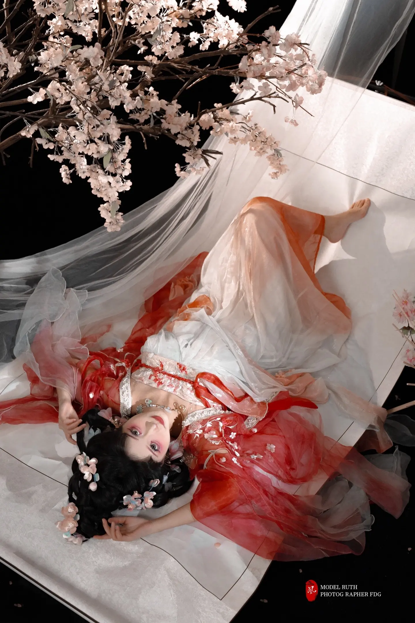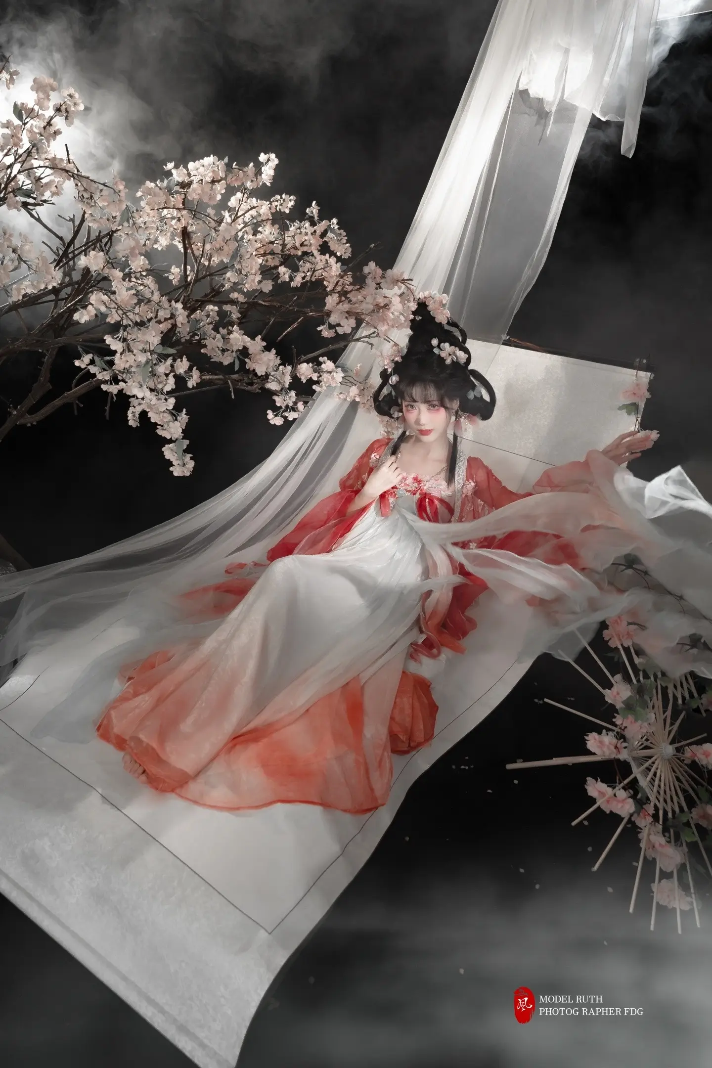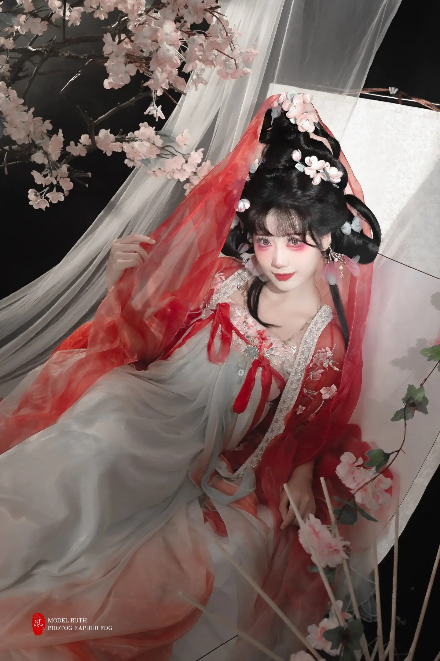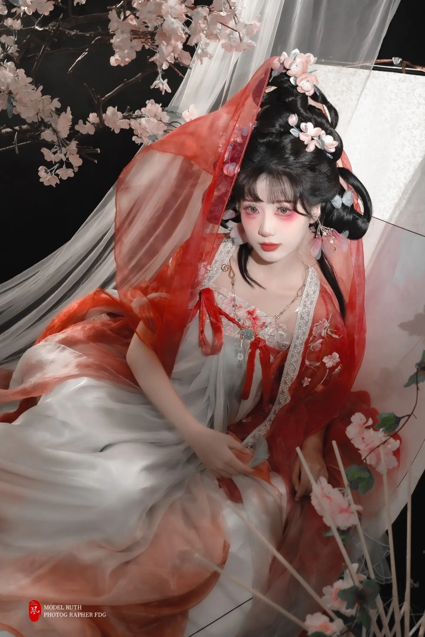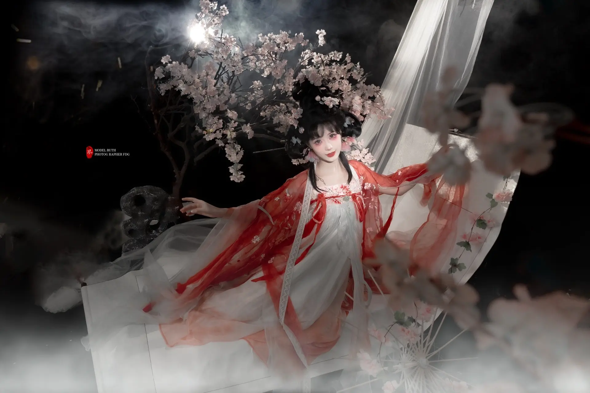 「青烟缠金钗,红裳融花影」。脑洞妆