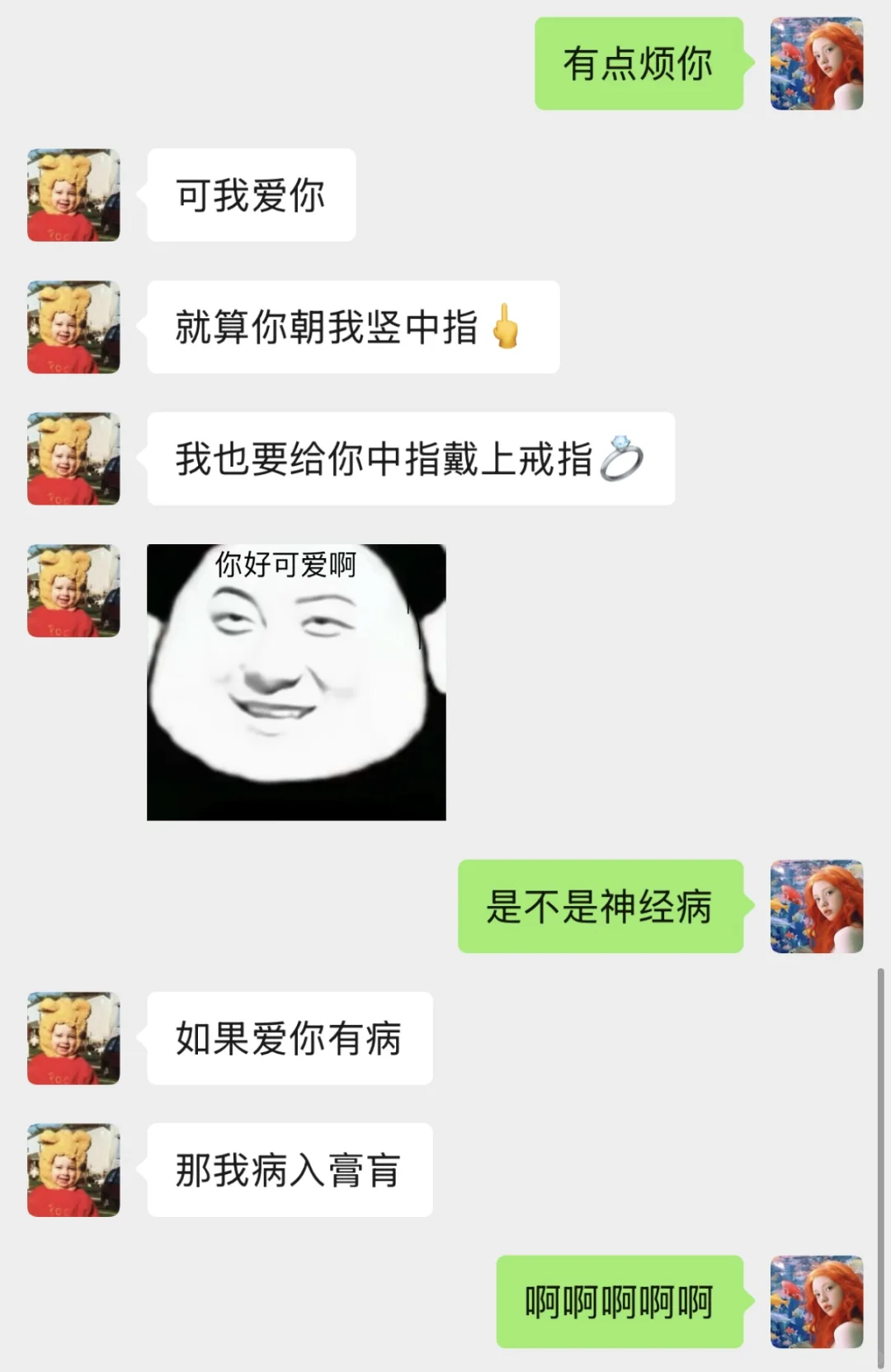 他每天都跟我有说不完的话,表达不完的想念,和犯不完的贱。