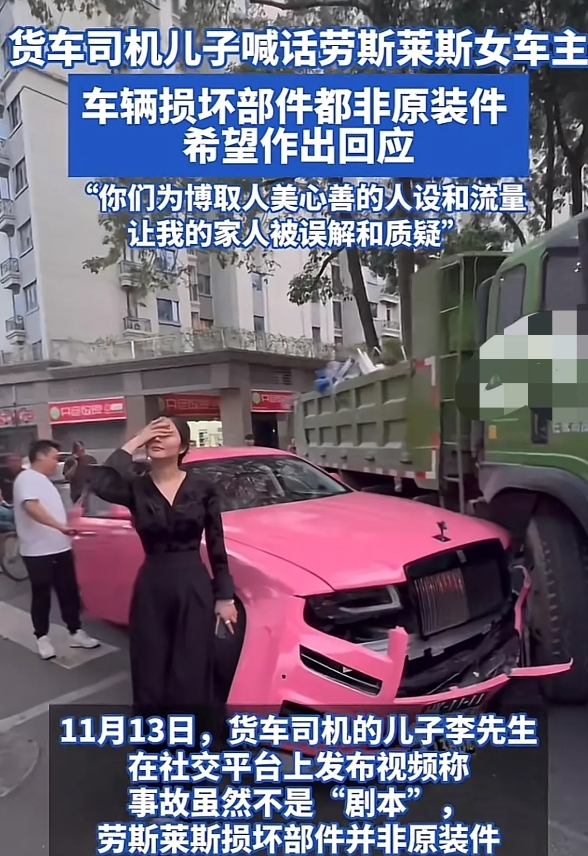 据货车司机的儿子说,劳斯莱斯车损坏部件都非原装,虽然整个事件不是剧本,