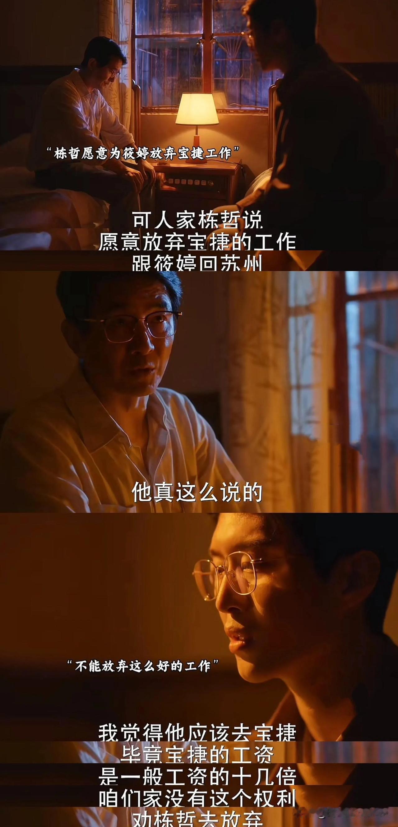《小巷人家》林栋哲放弃宝洁工作,愿意跟筱婷回苏州[赞] 庄老师死活不让筱婷跟着林栋哲去广州,林栋哲只好放弃广州保洁的工作,跟着筱婷回苏州,宋莹和武峰也同意儿子的做法[赞] 不过图南很公证,告诉筱婷,站在男人的角度,不应该让林栋哲牺牲这么大,毕竟宝洁的工资是普通工作的十几倍,他现在是愿意,将来呢? 图南也告诉爸爸林栋哲的决定,庄老师说我管不了林栋哲,但是我要管筱婷,筱婷必须回苏州 总感觉林家对庄家是掏心掏肺,庄家有点小气吧啦的[捂脸]