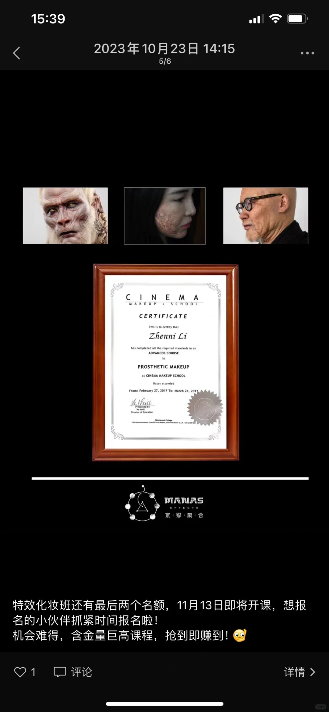 特效化妆还有最后1个名额