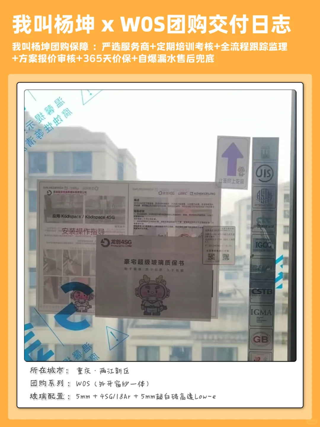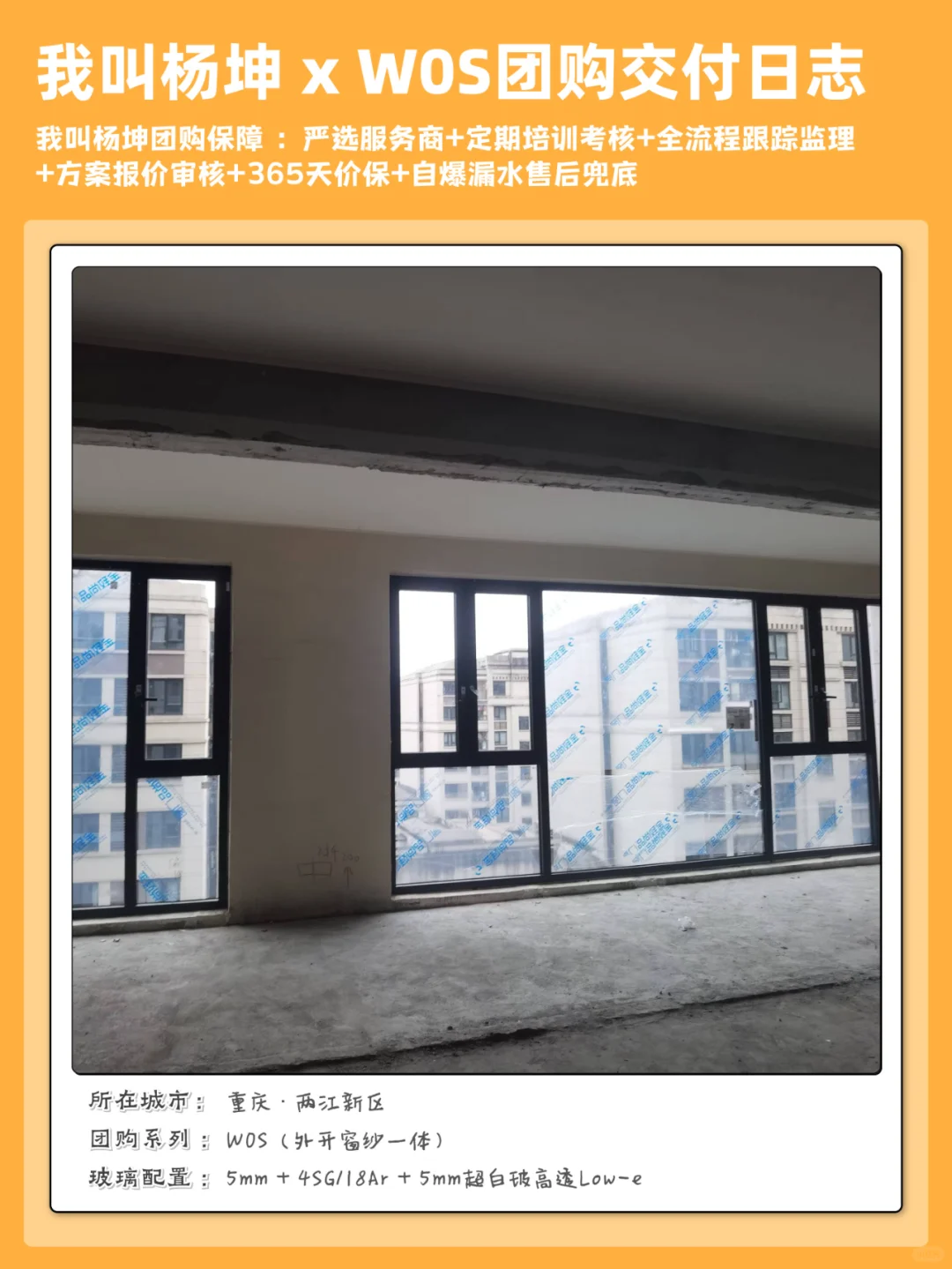 ✔图一 ~ 图五:重庆两江新区 W0S 阳台封窗大玻璃交付案例;