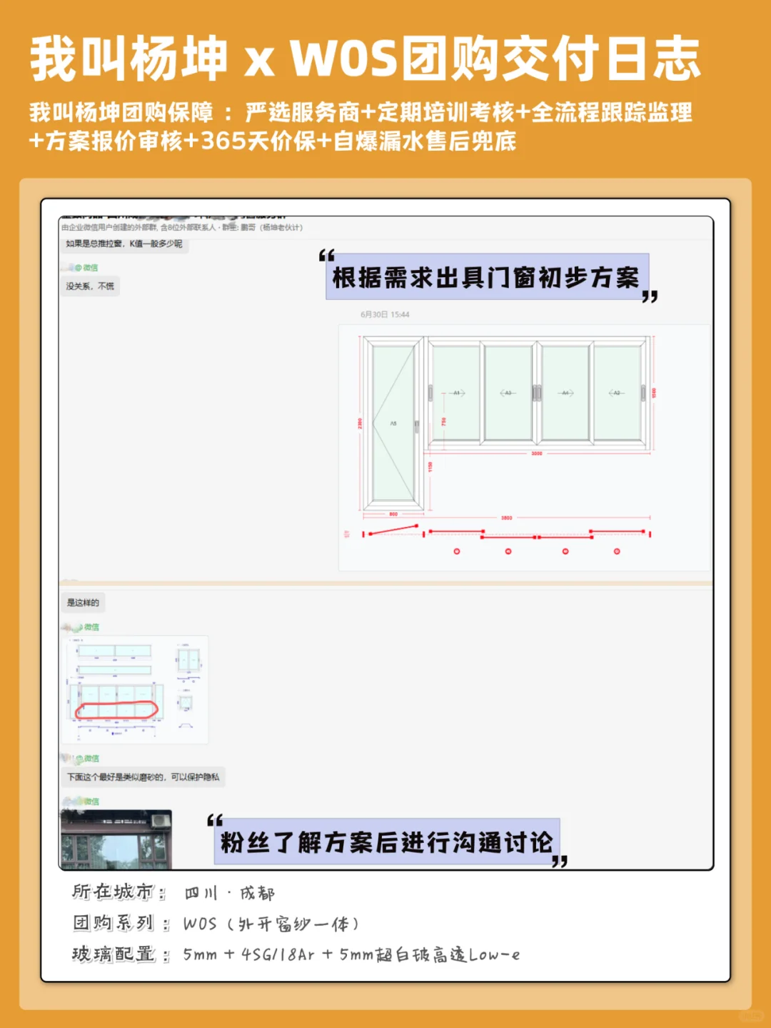✔图十三 ~ 图十八:四川成都温江区 全屋换窗沟通案例;