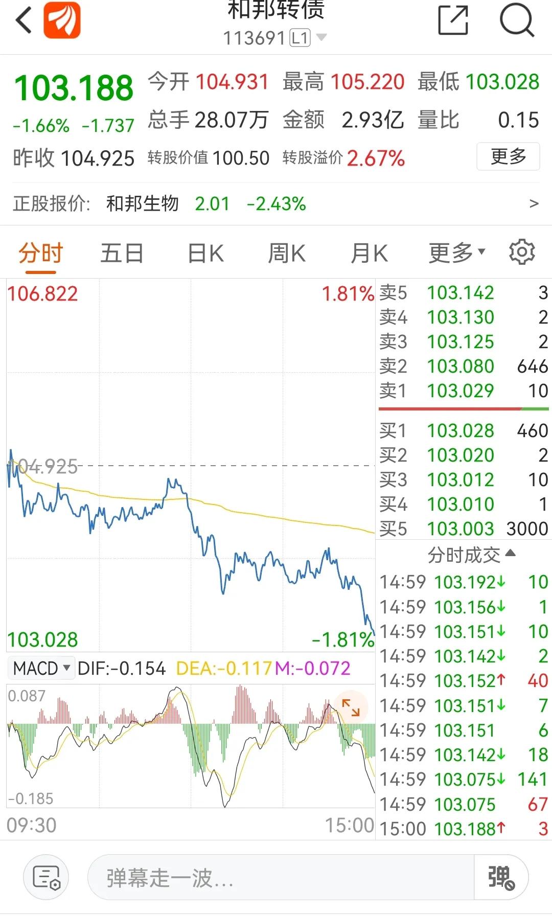 万凯转债都上岸了,朋友们,新债可以放心申购。 前两天和邦转债上市,集合竞价开盘价只有103元,低于很多人的心理预期。 而那些等到9点30分以后再卖出的,落差更大。期待中的108元没出现,105元也没出现,103元也没了。 再加上以前的万凯转债,开盘破发,一年中签2次。上次亏50元,这次挣30元,总体还是亏损。 很多朋友准备放弃可转债申购。 大可不必! 第一:现在两市成交额保持在1.5万亿元以上,牛市放弃打新没道理。 第二:发行量几十亿元的万凯转债以及和邦转债都在面值以上。 其他发行量小的更不用害怕了,无非是挣多挣少的问题。 个人观点,仅供参考,不构成投资建议。 朋友们,祝大家好运!