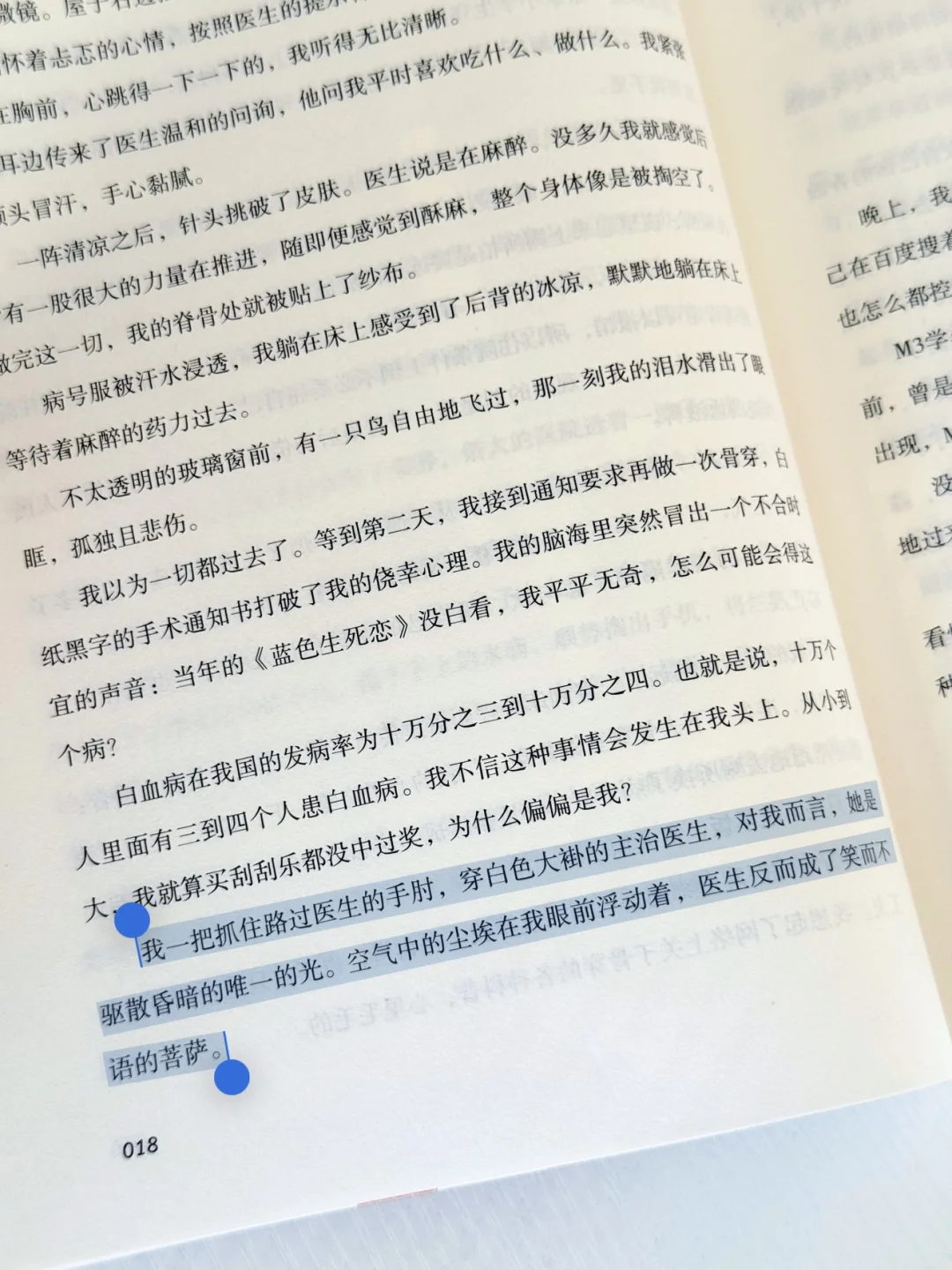 “我一把抓住路过医生的手肘,穿白色大褂的主治Y生,对我而言,她是驱散昏暗的唯一的光。空气中的尘埃在我眼前浮动着,医生反而成了笑而不语的菩萨。”