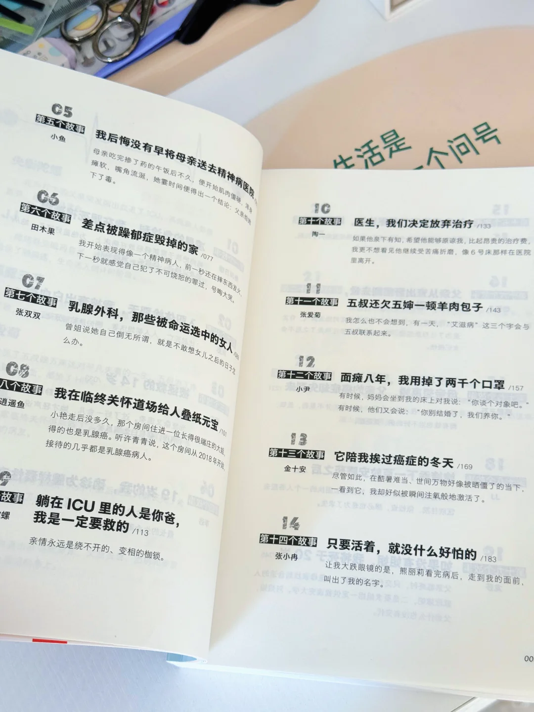 书中每篇文章都让我无比珍惜现在的生活,真的是除了生死,人生无大事。对比一下日常生活中令我抓心挠肝的事,在这本书中的真实故事面前,都如鸿毛一样轻。