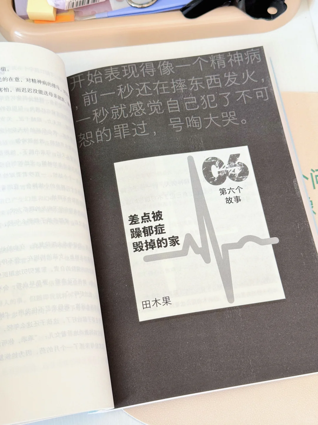 ▪️其中有一篇是讲躁郁症的,因为失恋患上了心理疾病的前兆却不自知,加上后来考试的压力,她的行为变得越来越奇怪,甚至萌生了多次伤害自己的前兆,知道这样是不对的,于是下定决心自救,看了很多书籍和资料,发现自己患上了双向情感障碍。