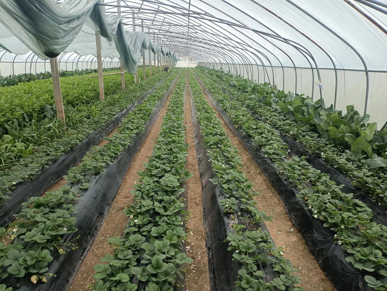 土地流转,大棚里好风光! 河南豫东一村民,经过土地流转,经营的蔬菜大棚,目前非常好! 蔬菜大棚里面好风光!一道靓丽的风景线映入眼帘! 芹菜绿油油的,这就上市,据东家介绍,准备再给芹菜加点营养,控制高度,增粗加厚,一周后就出售,价钱也挺好的。 草莓现在已经有红的了,准备抓紧再施肥一次,半月左右就差不多都挂红了。 包花菜正在卖,行情很好。昨天去了乡农贸市场,生意挺好的,一三轮车的菜,不到一上午,就卖完了!