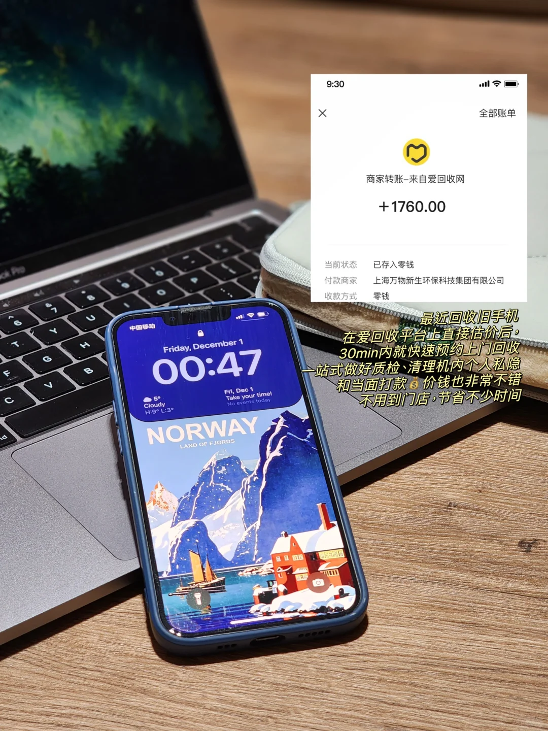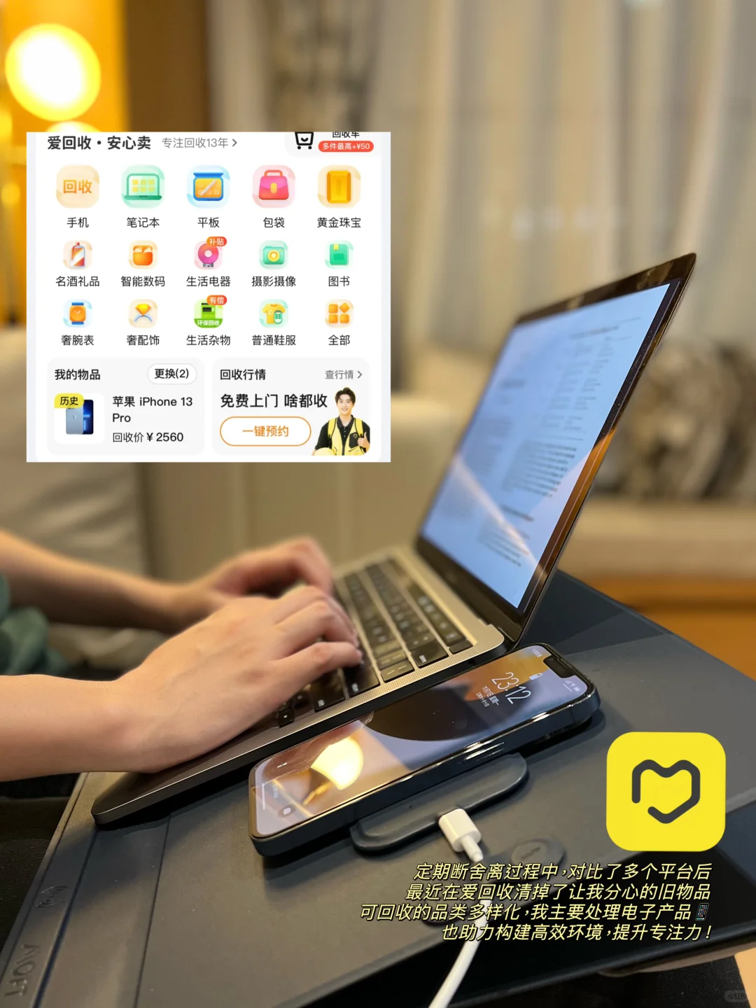 日常生活方面,提升财富思维的同时,也需提升办公效率,最近考虑换新手机。对比不同平台后,最后选择在爱回收把之前拍摄用的苹果12处理,大平台较有保障。