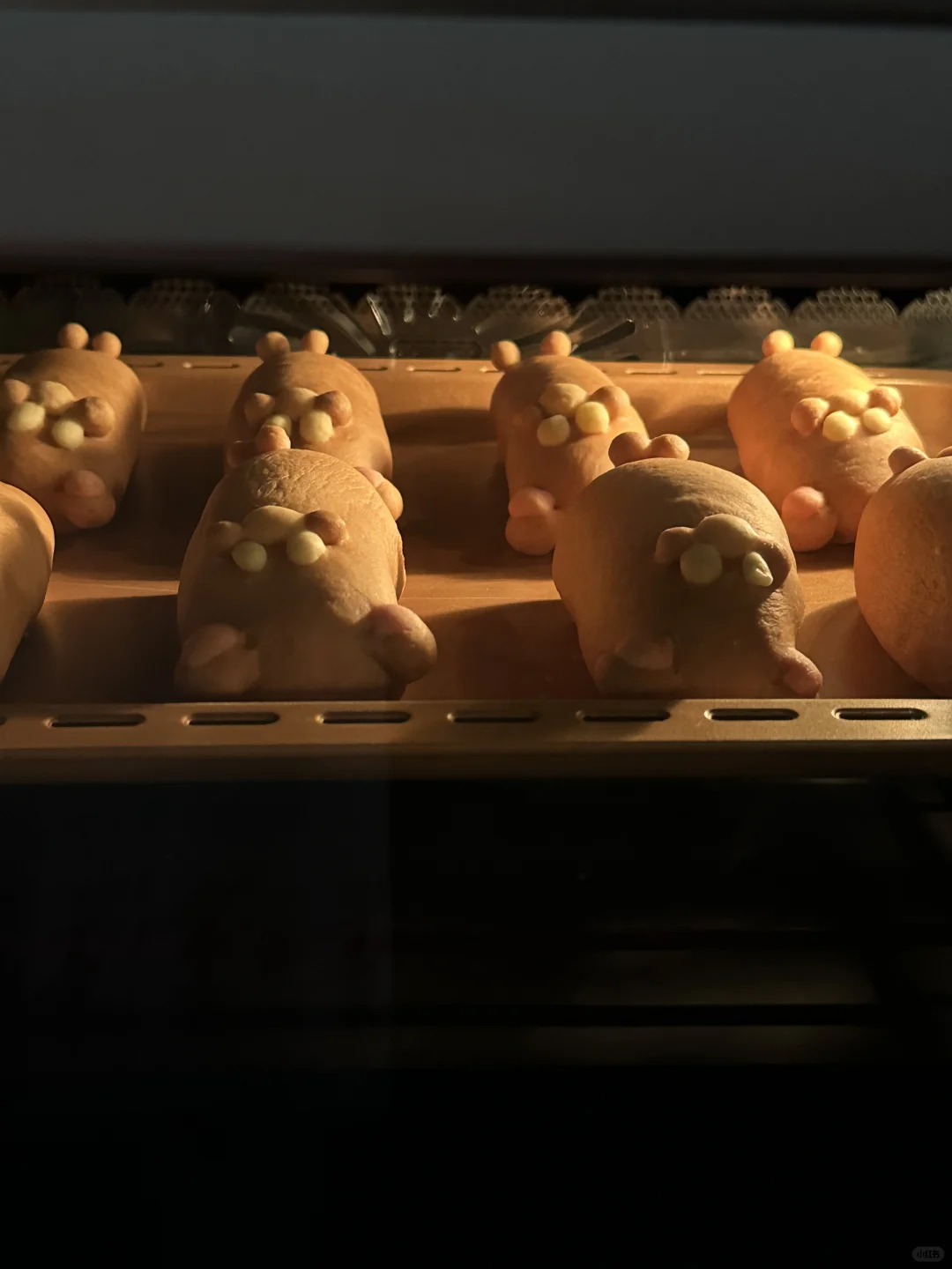 7️⃣制作好的面包烤箱 30°发酵40分钟,放一小杯温水保持湿度