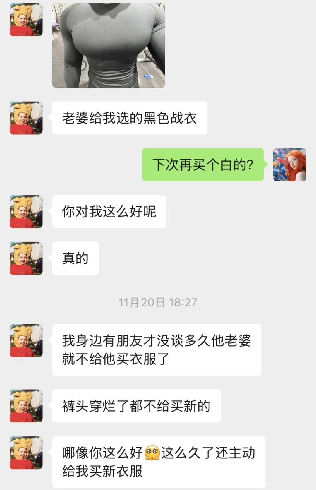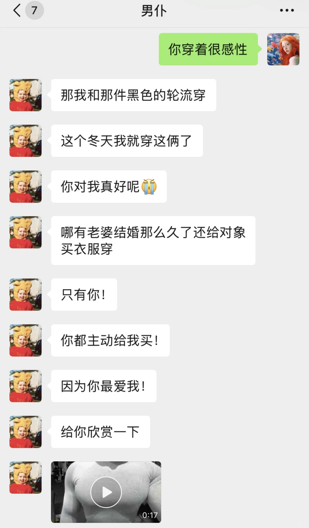 他欣喜若狂,又娇羞又兴奋地对我一顿贴贴,说只有我会给他买新衣服,我是天底下对他最好的人,吧啦吧啦……边说边在我身上蹭。
