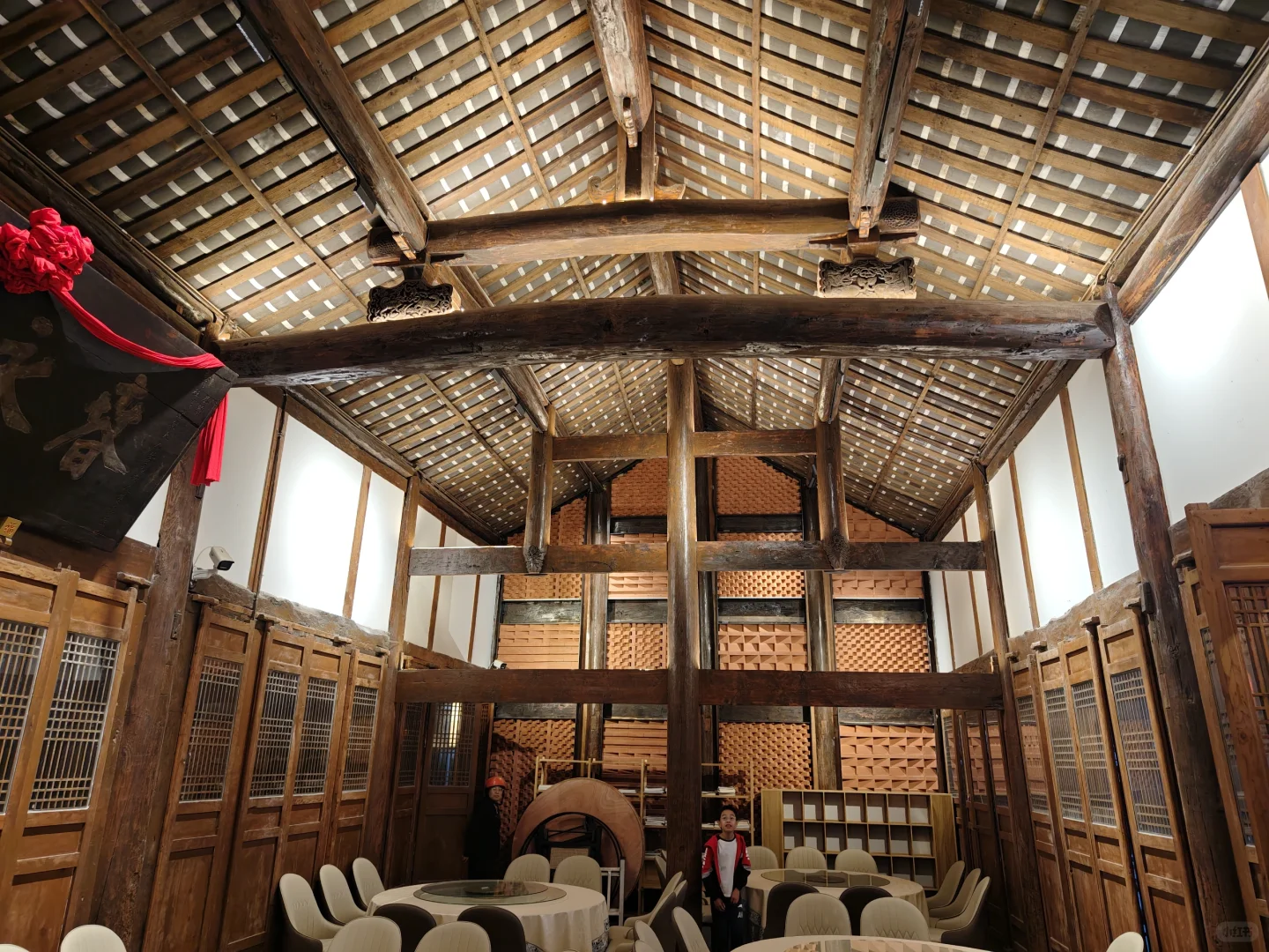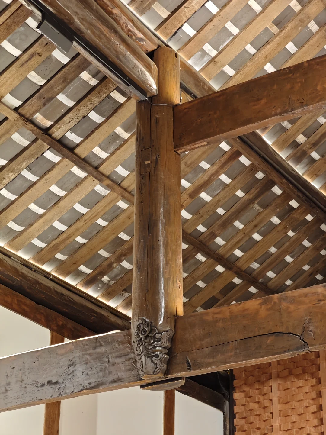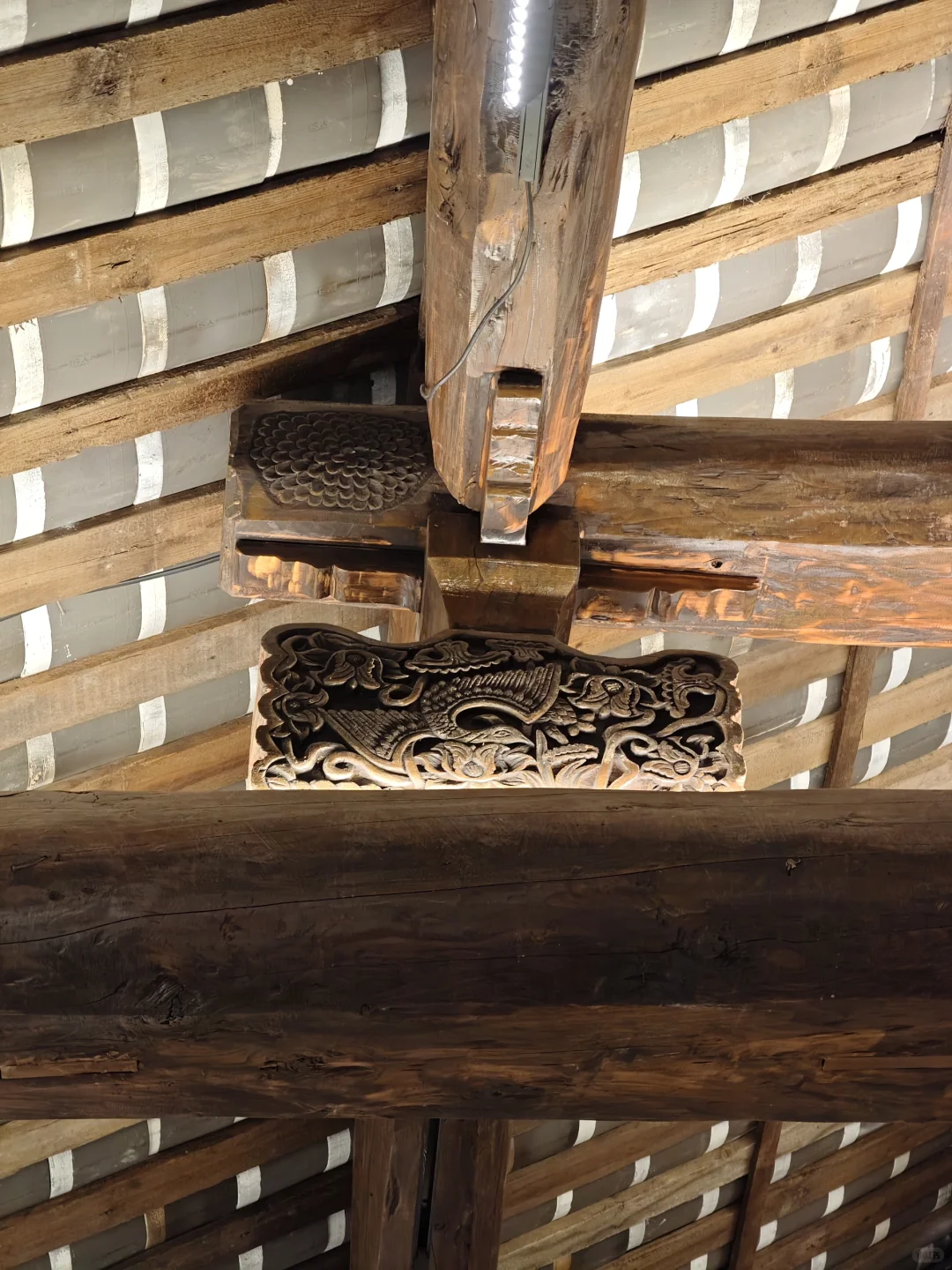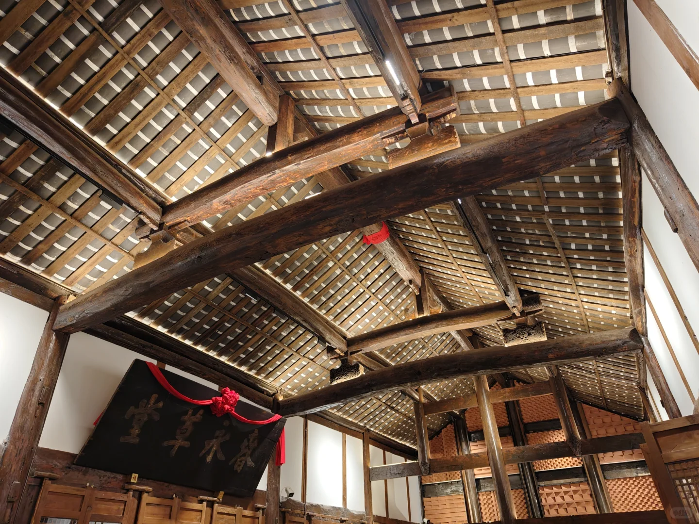 betterme 1 2024-12-11 22:29 四椽栿和平梁用材略微弯曲看着就老。瓜柱小别致上施卢斗和替木,我见识少没见过。好像还有捧节令拱。当心用抬担似乎减了一柱,其余都是明显的穿斗。这做法确实讲究了。
