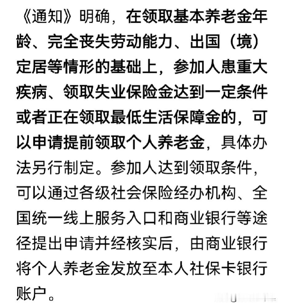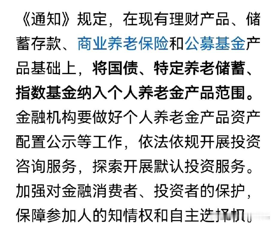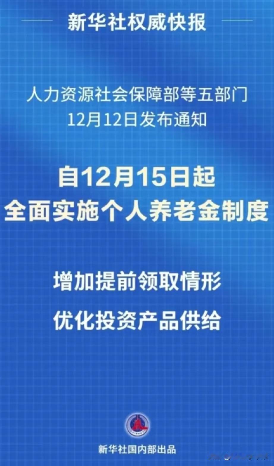 个人养老金制度将在全国范围内全面实施!关于个人养老金大家关心的几个问题,这里说说自己的观点。个人养老金说白了就是一种长期储蓄,就是老百姓自己缴费养自己。但这种储蓄和我们存银行里还不一样。总结起来就是三点:有限制、有好处也有风险! 1、首先不是人人都能参加个人养老金的,只有参加城镇职工基本养老保险或者城乡居民基本养老保险的劳动者才有资格! 2、个人养老金可以减免个人所得税,但这个税不是真的不要了,而是留到个人养老金取用时再收!据知情人透露,据说是3%的个人所得税! 个人养老金不可灵活取用!个人养老金每年最高可存12000,需要到一定年龄或满足一定条件才可灵活取用。具体有哪些条件呢?例如当事人要出国、遭遇重大疾病或失业或家庭陷入贫困! 3、个人养老金有用途也有风险!个人养老金仅可以用来储蓄存款,也可以购买理财产品、商业养老保险、公募基金、国债、特定养老储蓄和指数基金!这里就会牵扯很多保险公司,有投资就会有风险,高收益同样代表着高风险,国家虽然对保险业务有要求有管控,但是还是提醒大家根据自己实际承受能力谨慎选择理财产品。 总得来说,随着社会老龄化的加剧,我国即将迎来近半个世纪的老龄化社会,现收现付的代际抚养将出现严重收支失衡,日益增加的养老负担将面临空前压力,这是国情导致的无奈之举,也是当下稳定经济、保障民生的不二首选!论养老金的重要 养老金存哪里?