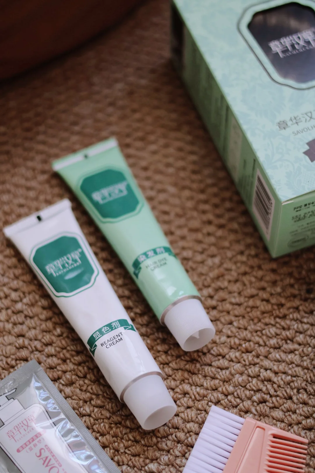 使用也方便,染发剂和显色剂混合,均匀涂在头发上,涂完等半小时就好啦。