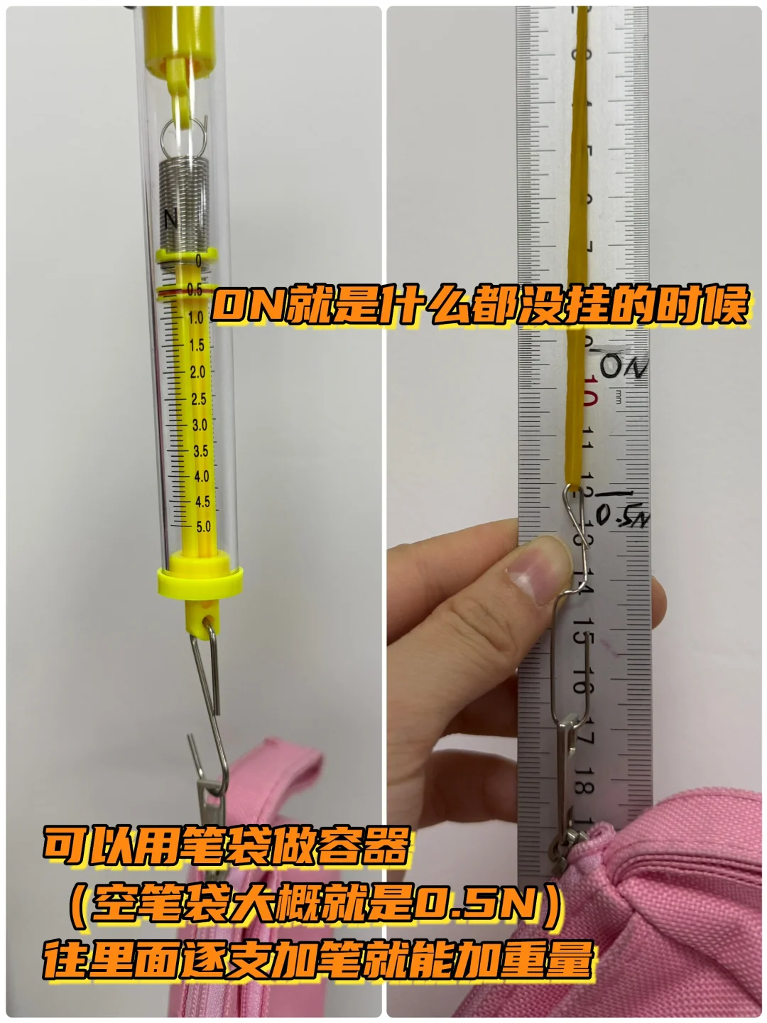 [爆炸R]学生居然想到能【用尺子为背景板】做测力计