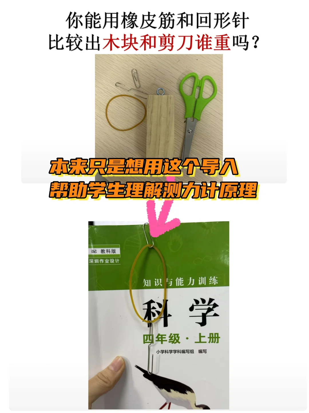 打算在学完使用方法等基础内容以后,用下一课的时间,来把他们在本课导入环节 想到的“用尺子做测力计”的奇思妙想落实出来!
