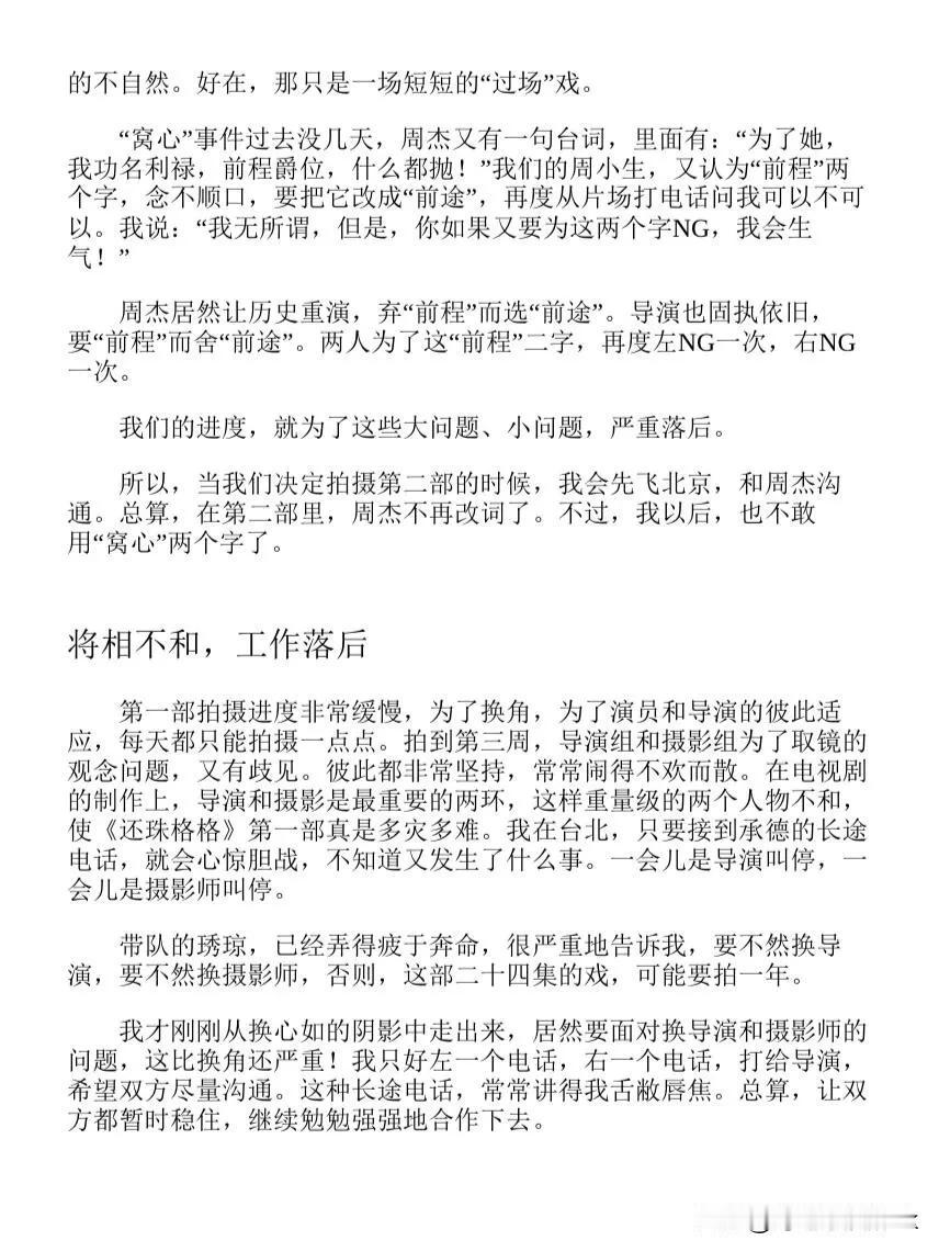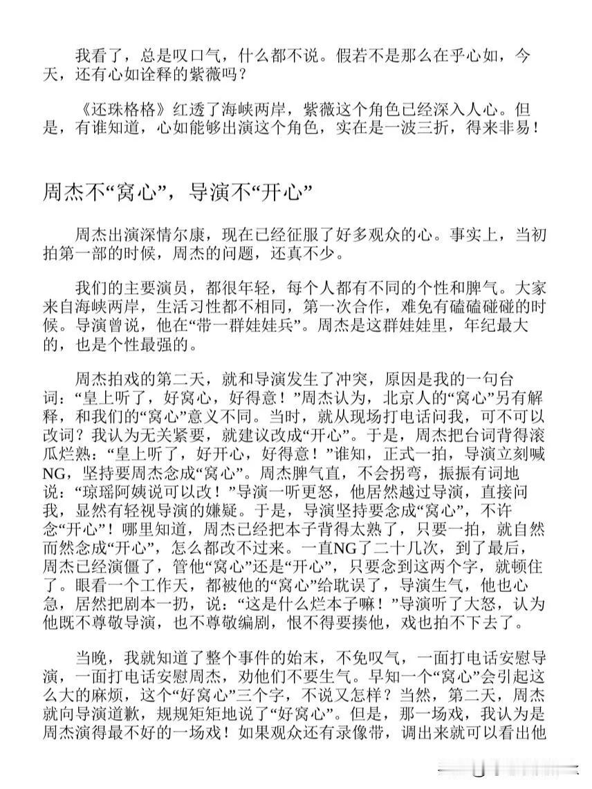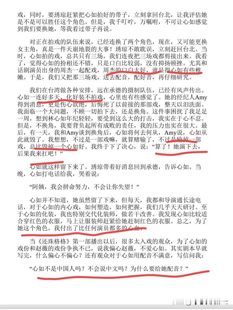 原来林心如的紫薇真的差点被换掉,难怪琼瑶葬礼那天她那么伤心[灵光一闪] 根据琼瑶的描述,当时的林心如是新人,而且前一部戏播的很差,所有领导强烈建议换掉她,琼瑶阿姨也为难 因为琼瑶阿姨看了林心如的三场戏,跟对手周杰比起来确实差很多,周杰可是话剧演员,台词很厉害 不过琼瑶阿姨不忍心毁了林心如,打算赌一把,一部戏和林心如的前途来说,不算什么 琼瑶阿姨真的很爱林心如了,所以也能理解林心如在琼瑶阿姨的葬礼上那么伤心了,真的是她的伯乐 周杰是个有个性的人,难怪当年被林心如说了之后就退圈了,他有他的骄傲