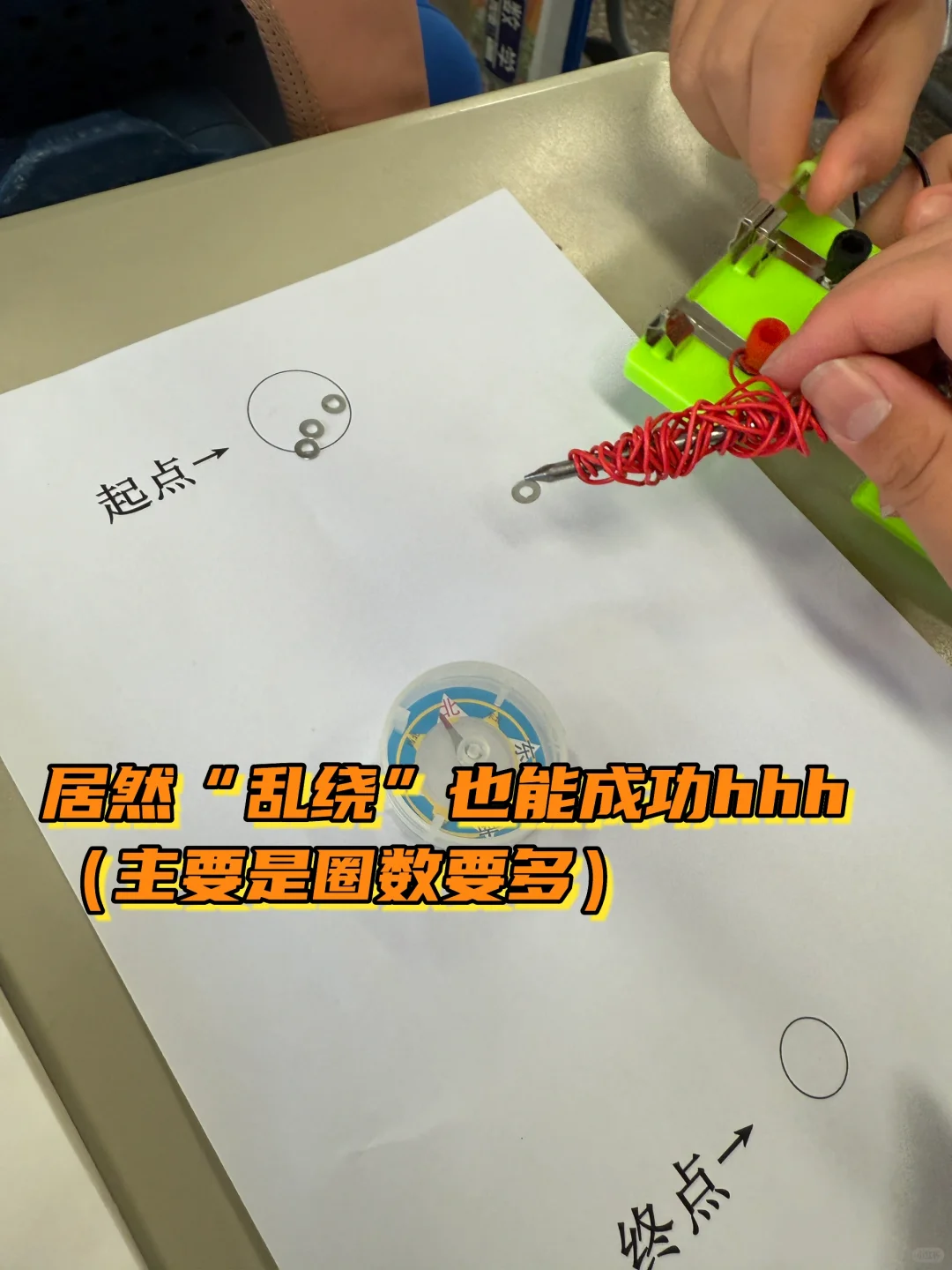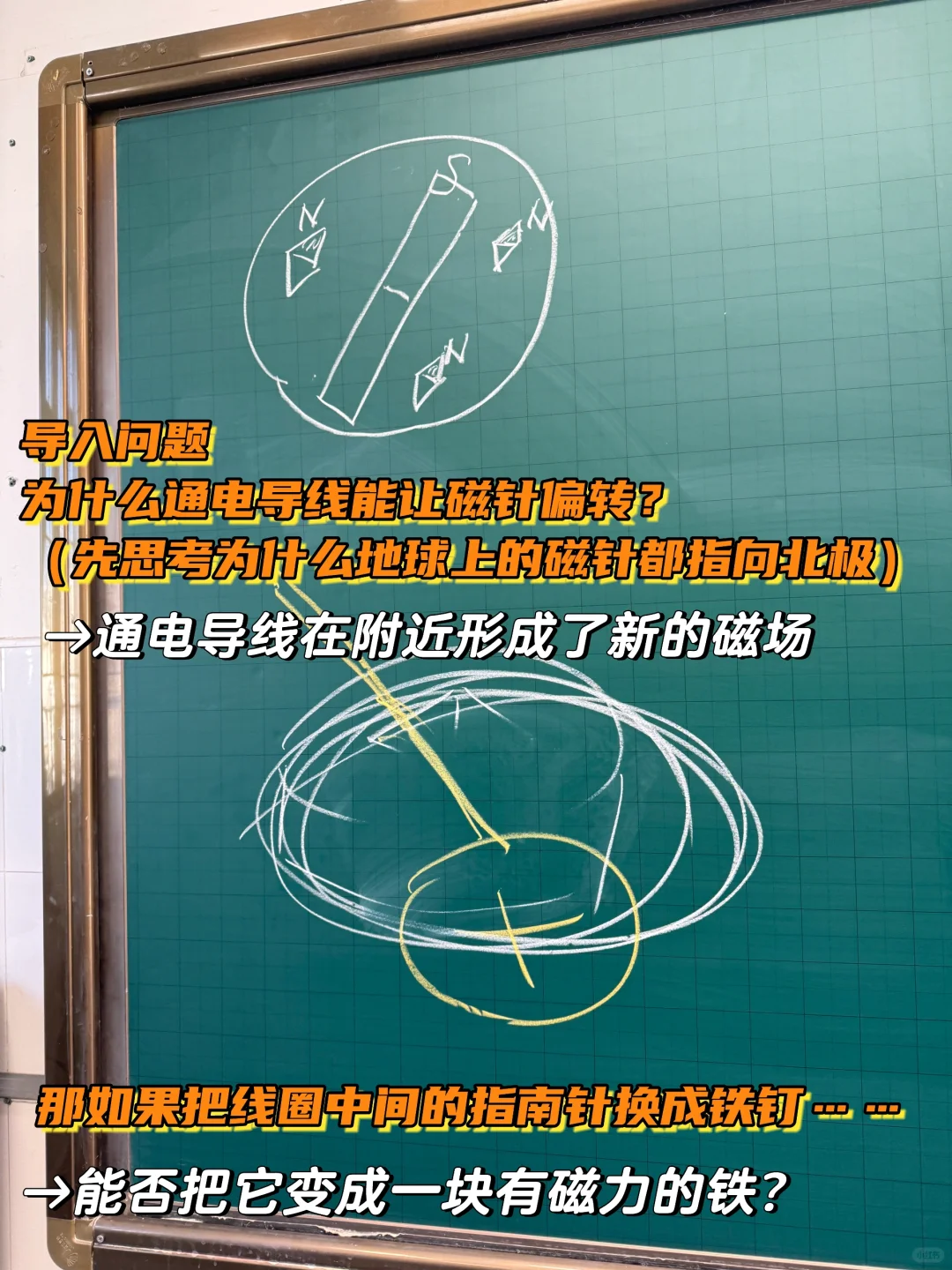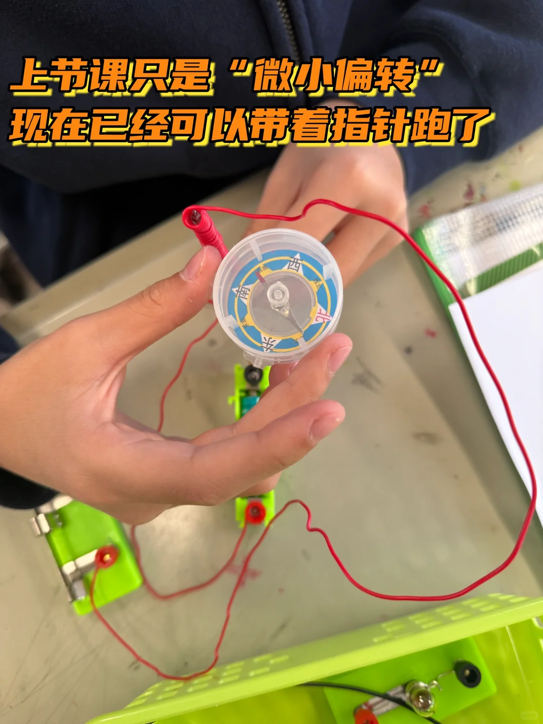 [大笑R][大笑R]还有一个很有意思的点是,前几节课还是“微小偏转”,这一节课的电磁铁已经能引着磁针动了!这就是人类的进步!