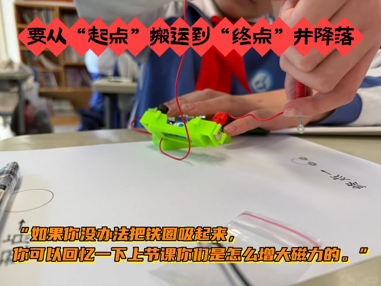 其实为了完成任务一成功吸上铁圈,加上前面的迁移暗示,学生已经能想到并尝试【多绕几圈】,相当于已经发现了【圈数对磁性的影响】