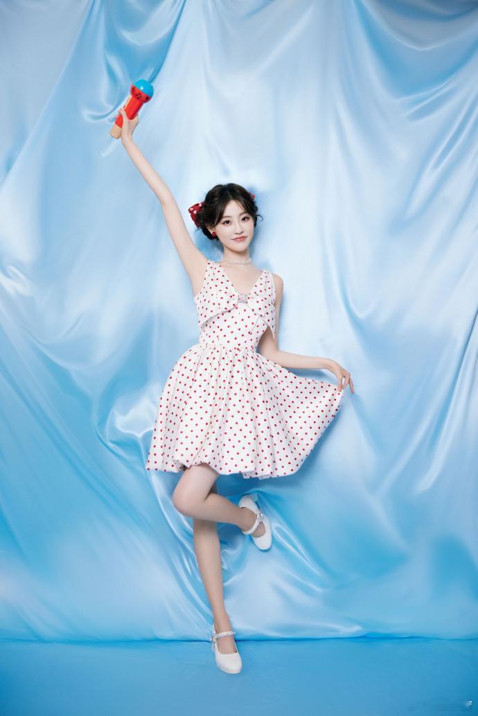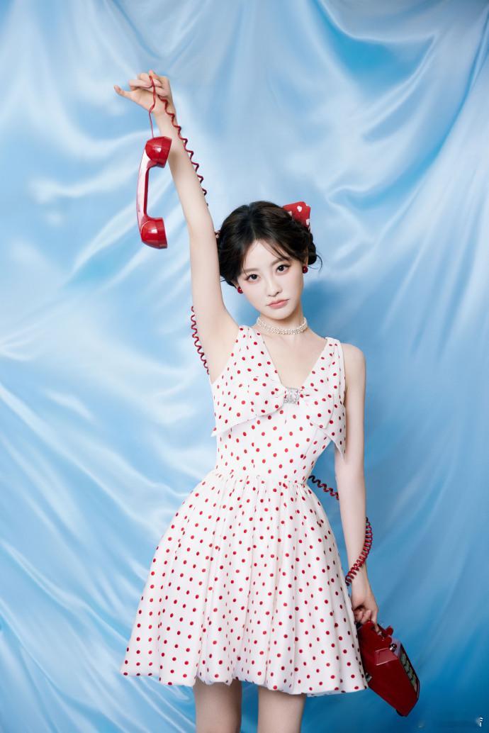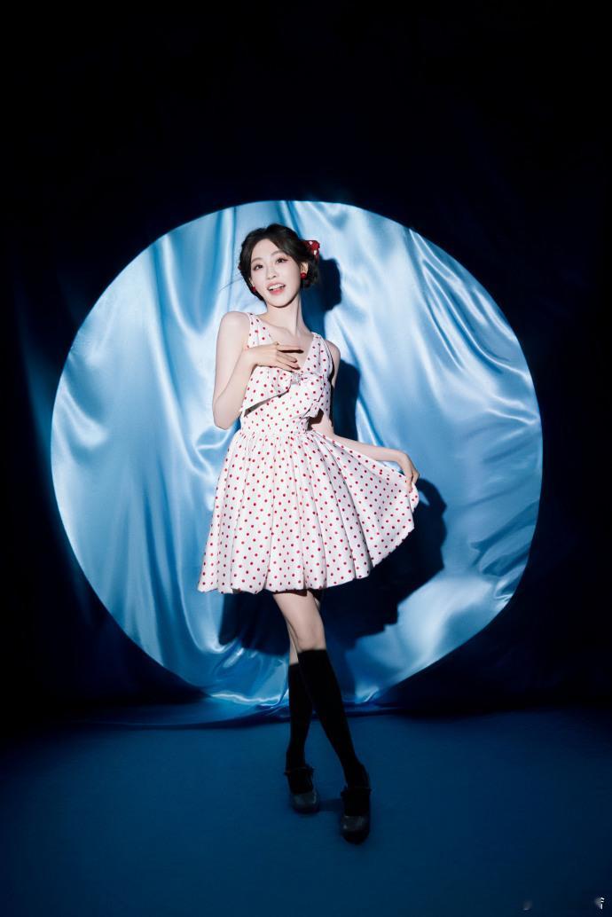 祝绪丹cos玛丽猫祝绪丹红色波点裙祝绪丹的玛丽猫造型,红色波点裙增添梦幻感