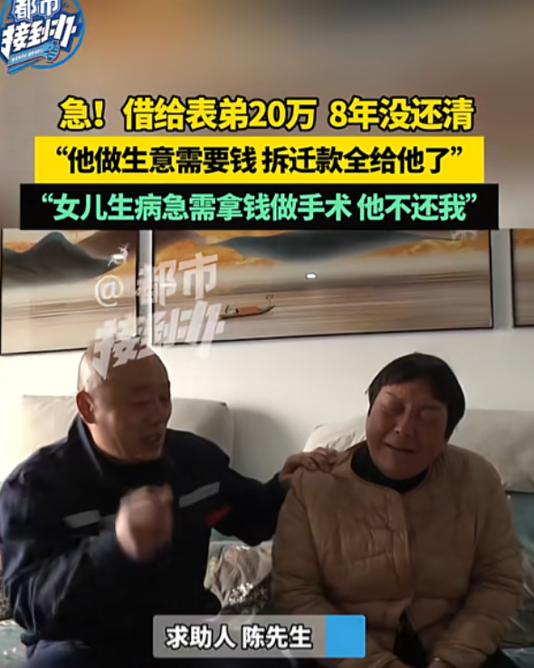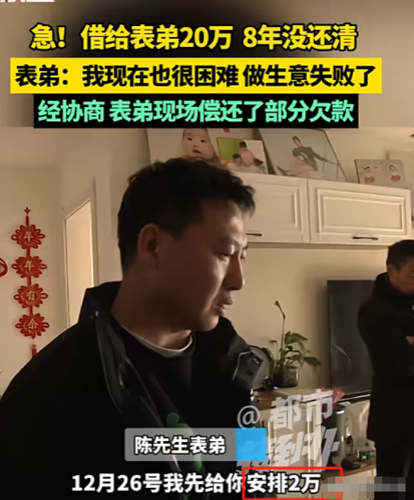 信息来源:(都市报道——《2024年12月25日急!借给表弟20万,8年没还清,“他做生意需要钱 拆迁款全都给他了”》)