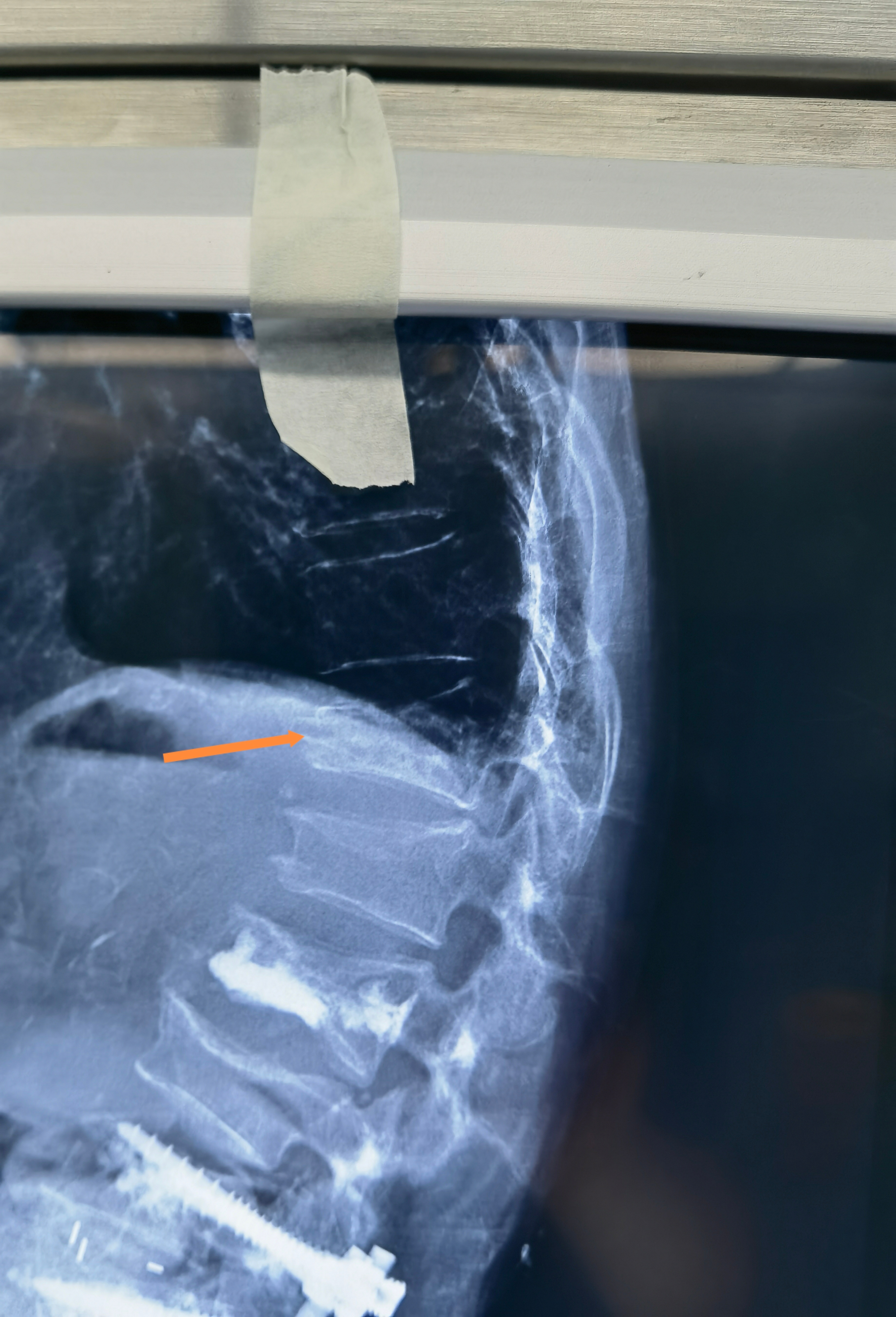 老人家的脊柱骨折首选微创手术,不建议保守治疗。看这个老太太,躺着做CT显示胸12