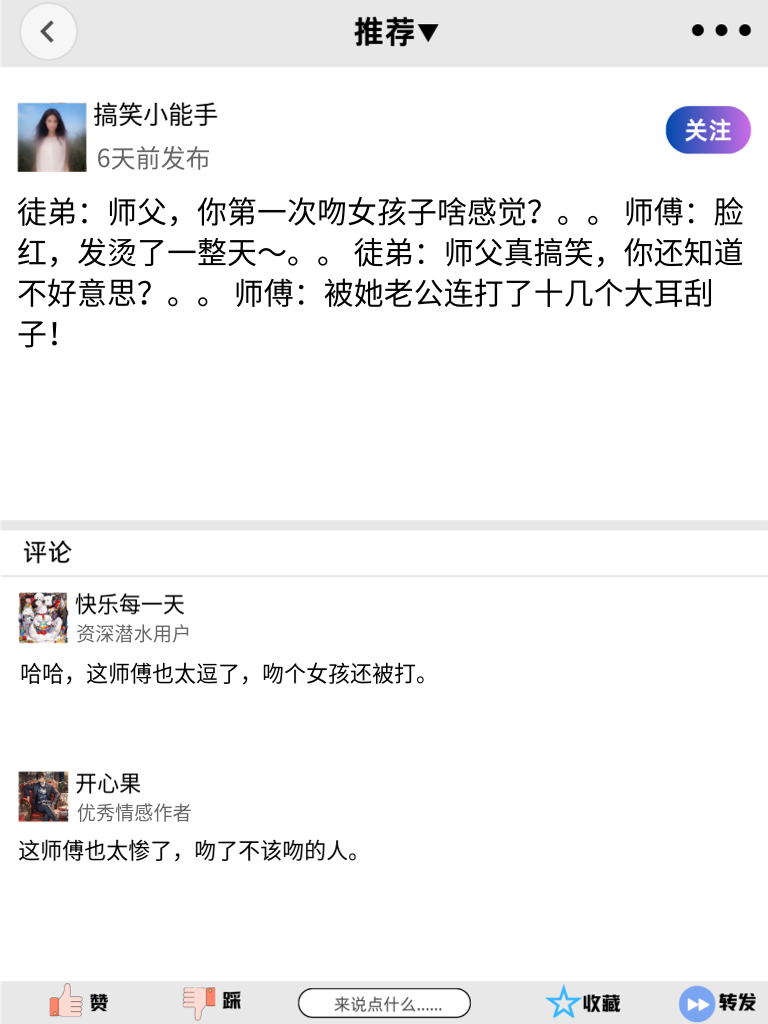 笑到不行的段子,赶紧分享给朋友圈,让快乐传递!