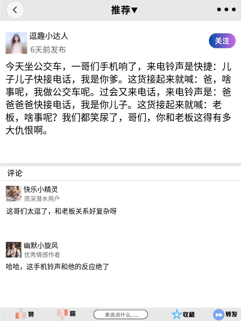哈哈,这些段子太逗了,赶紧分享给朋友一起笑!