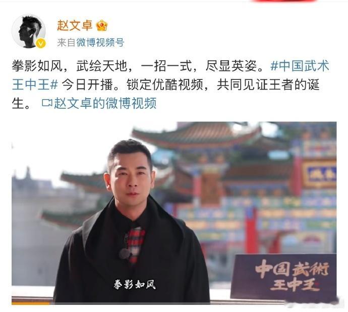 吴京赵文卓共同期待的武综含金量 这武综要爆!赵文卓用心良苦,集齐武术冠军阵容,吴京诚意满满打 call,让武术在舞台上大放光彩。没有花俏包装,只有对武术热爱的初心,中华武术的精气神即将震撼来袭!