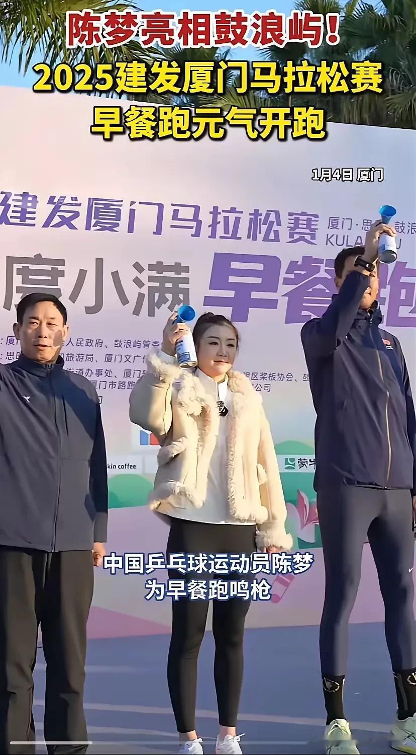 陈梦今天打扮得好漂亮去参加活动了,为厦门马拉松赛早晨跑鸣枪[赞] 枪打出头鸟,现在大家把注意力集中在樊振东身上了,没有注意到其实陈梦也退出了世界排名,表达了不满 不过这样陈梦倒是乐得清闲,可以到处参加活动,赛场上那么拼命,赛场下也是一个爱美的小姑娘,这样打扮起来漂亮好多了