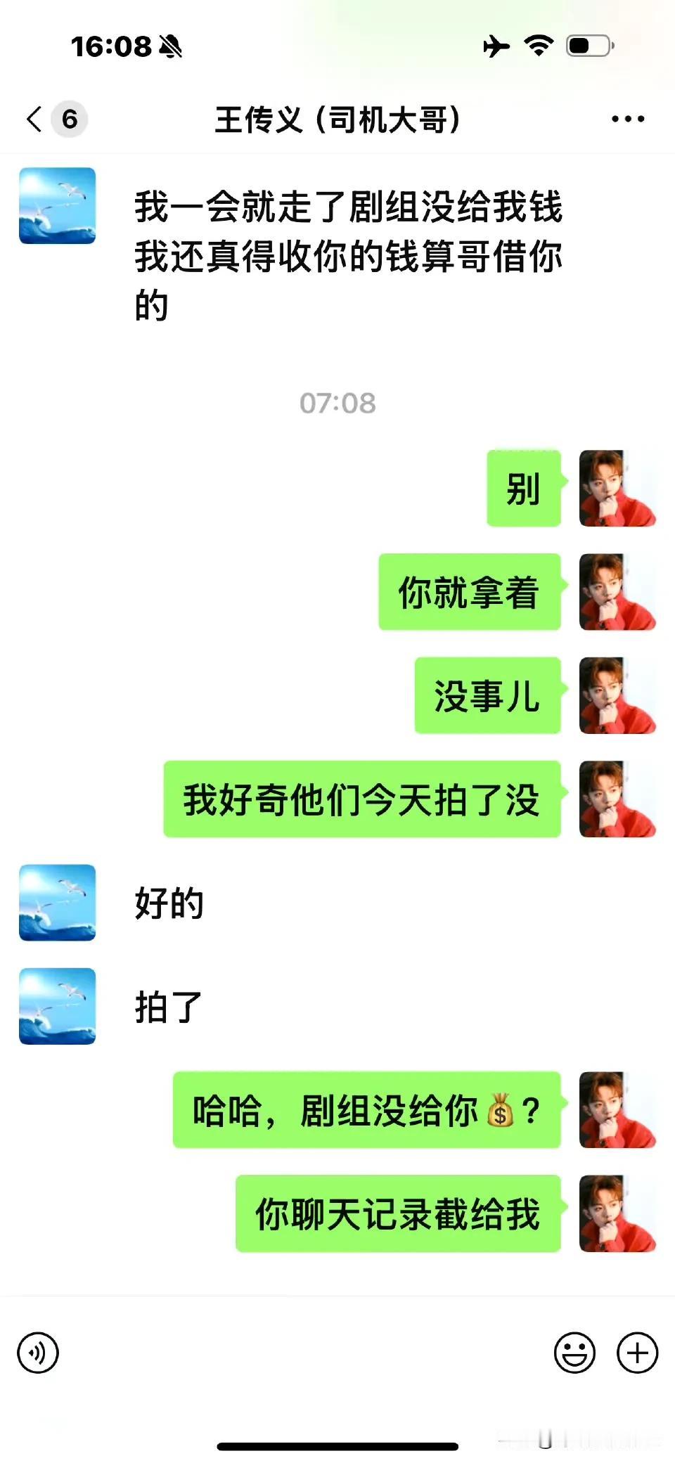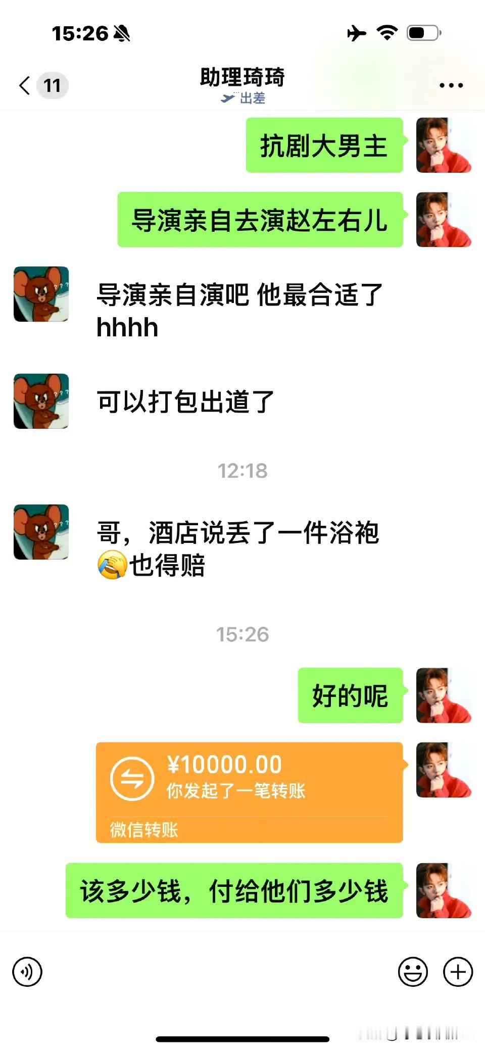 李明德放聊天记录了,剧组甚至连司机大哥的工资都没有给[捂脸] 现在这个瓜可是越来越热闹了,李明德说要起诉他们赔偿误工费,而且李明德发出的聊天记录,剧组连司机大哥的工资都没有付,还是李明德自己贴钱给了司机大哥 剧组这格局小了哈,说司机大哥和李明德一伙儿的,这样就不用给人结工资了吗?[捂脸] 酒店一件浴袍也要李明德赔偿,李明德直接转了10000给助理赔偿剧组[捂脸] 现在群演,大学生,小演员都在支持李明德,事态发展越来越不受控制了