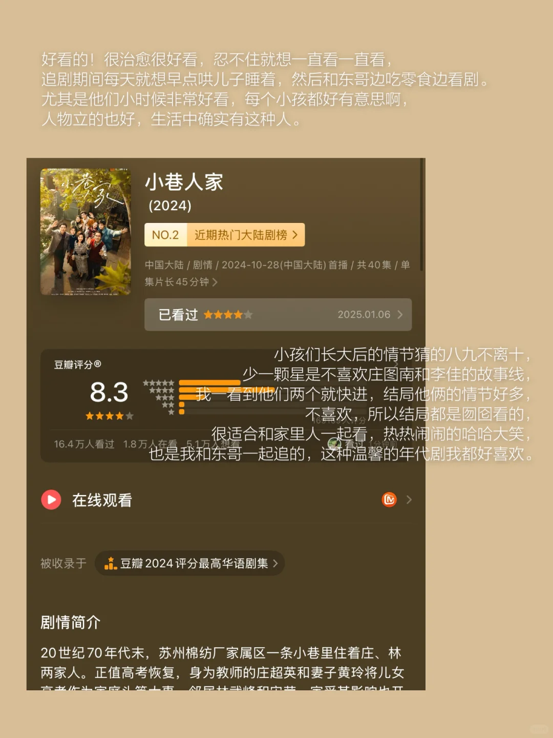 《小巷人家》⭐️⭐️⭐️⭐️