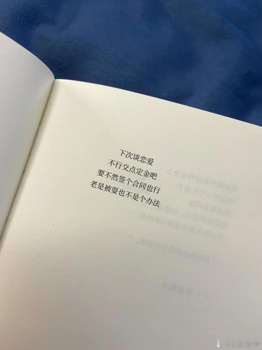 \"下次谈恋爱 交点定金吧 签个合同也行\"