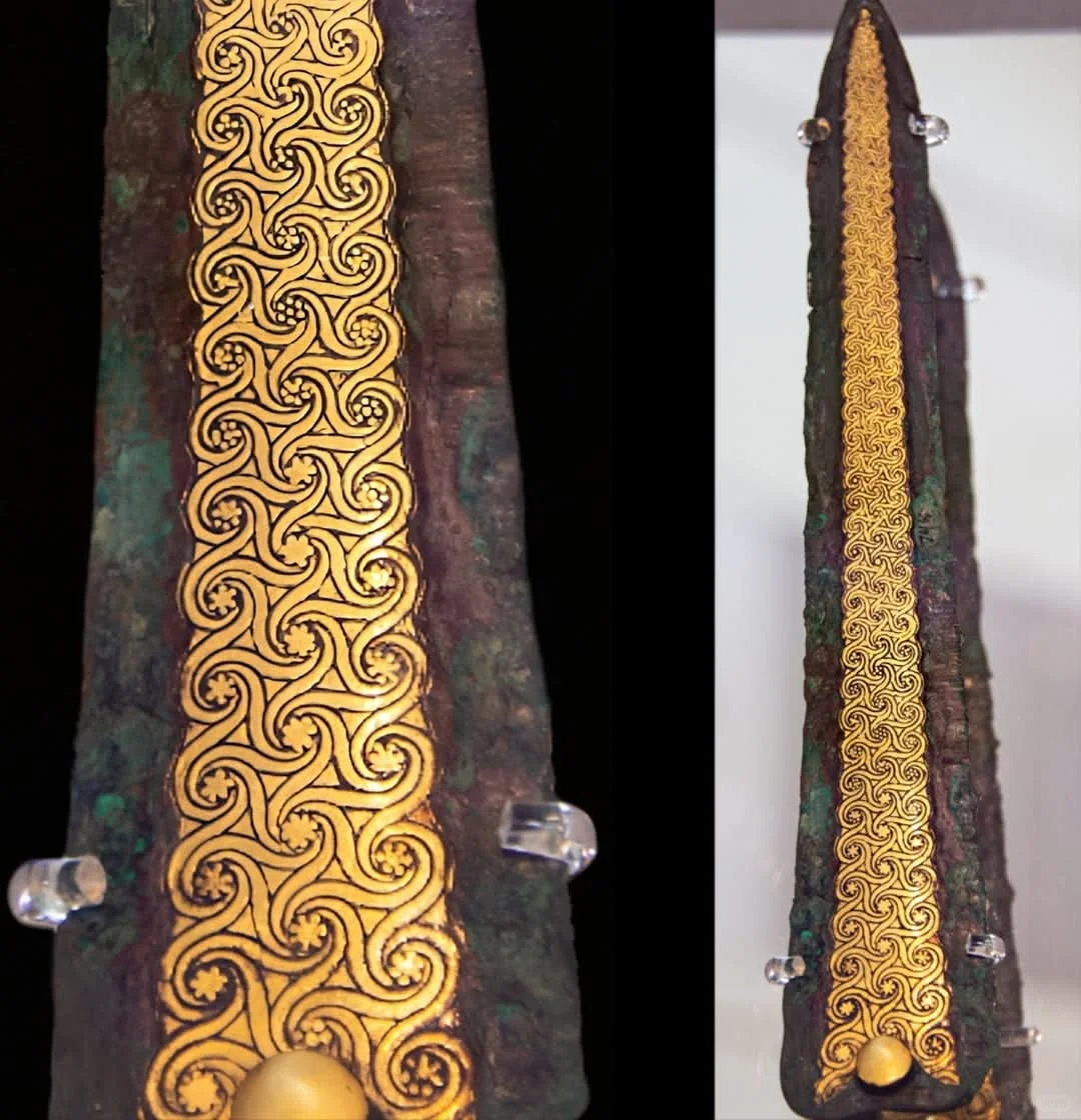 迈锡尼匕首(公元前16世纪)的细节,来自迈锡尼(希腊)A圈的第三墓。