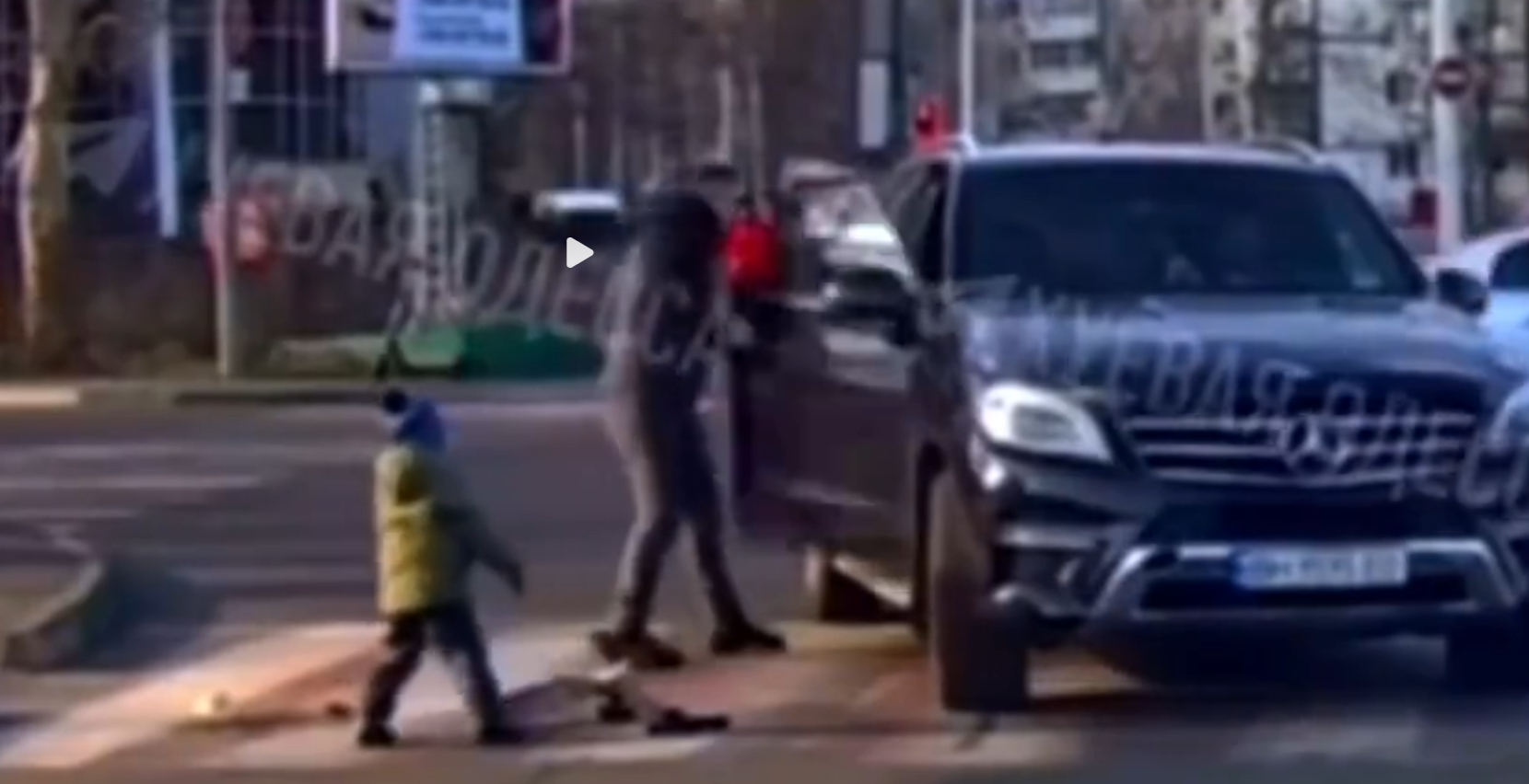 近日,有目击者看到,一名司机在行驶过程中未礼让过马路的小孩,小孩家长见状情绪激动