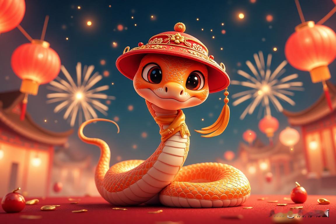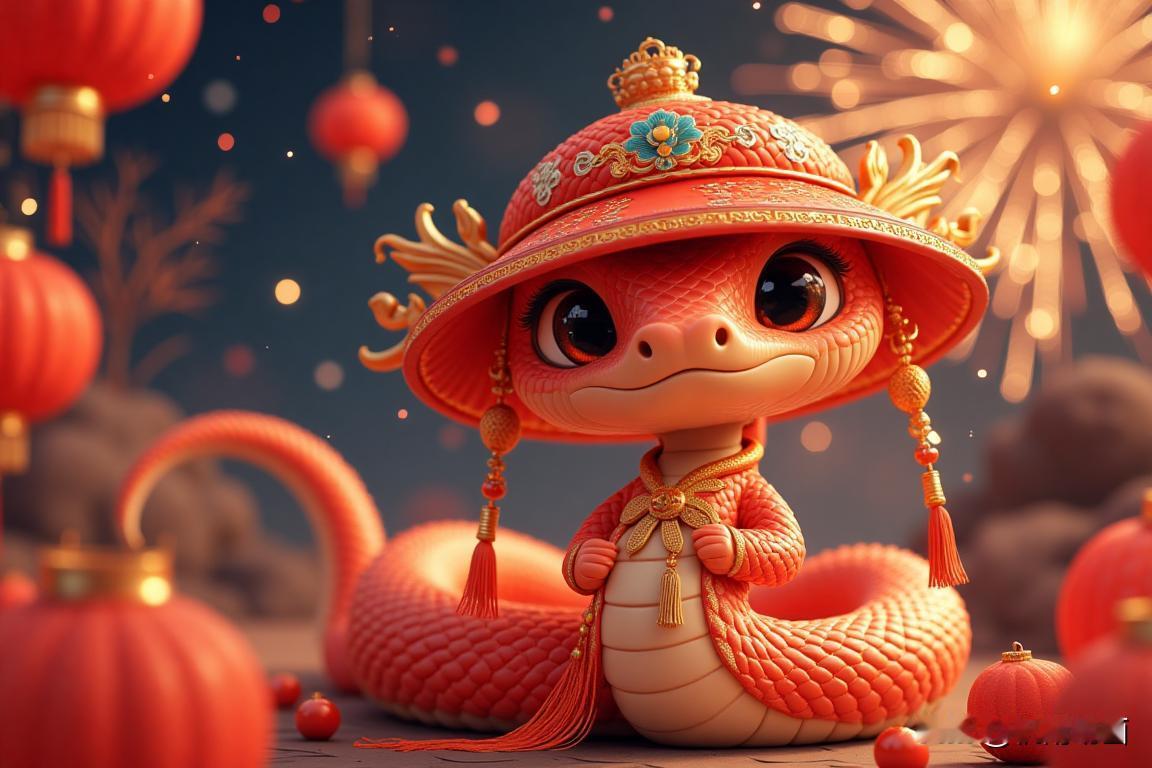 分享AI画的贺岁灵蛇,可用于祝福配图等。祝新年快乐,吉祥如意! 图片用flux模型生成,使用了FLUX Cute Cartoon Snake 3D by LH lora。 用比较简单的提示词就可以,比如“a charming cartoon cobra”