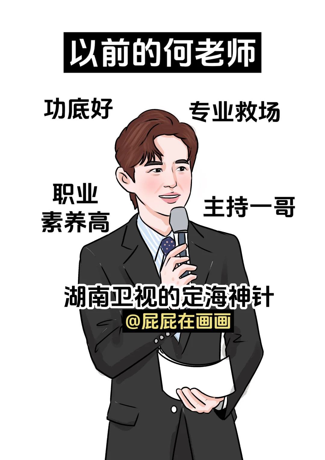 以前的何老师:青涩帅气,温文儒雅,半个娱乐圈的伯乐,主持一哥,是定海神针,带给我们欢乐