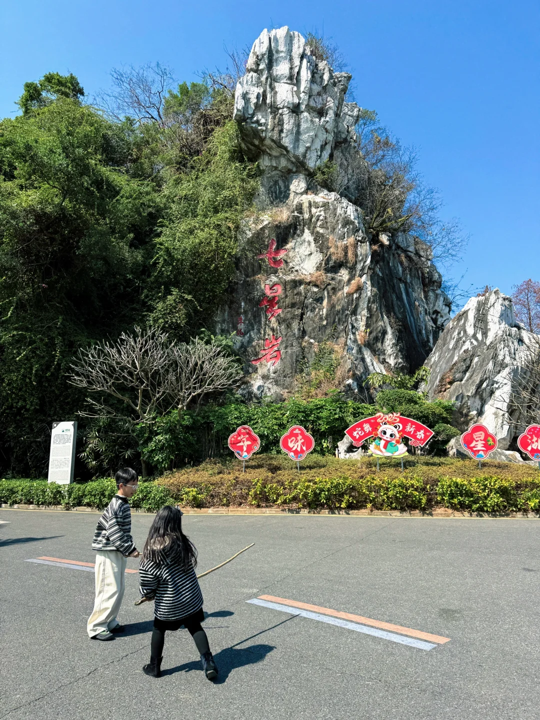 ✨七星岩:有着“小桂林”之称,带娃来呼吸新鲜空气超赞,景区内还有玉屏山⛰️水月宫-龙岩洞-千年诗廊-双源洞-桃花岛、摩崖石刻哥哥很喜欢👀还一边给妹妹讲解~