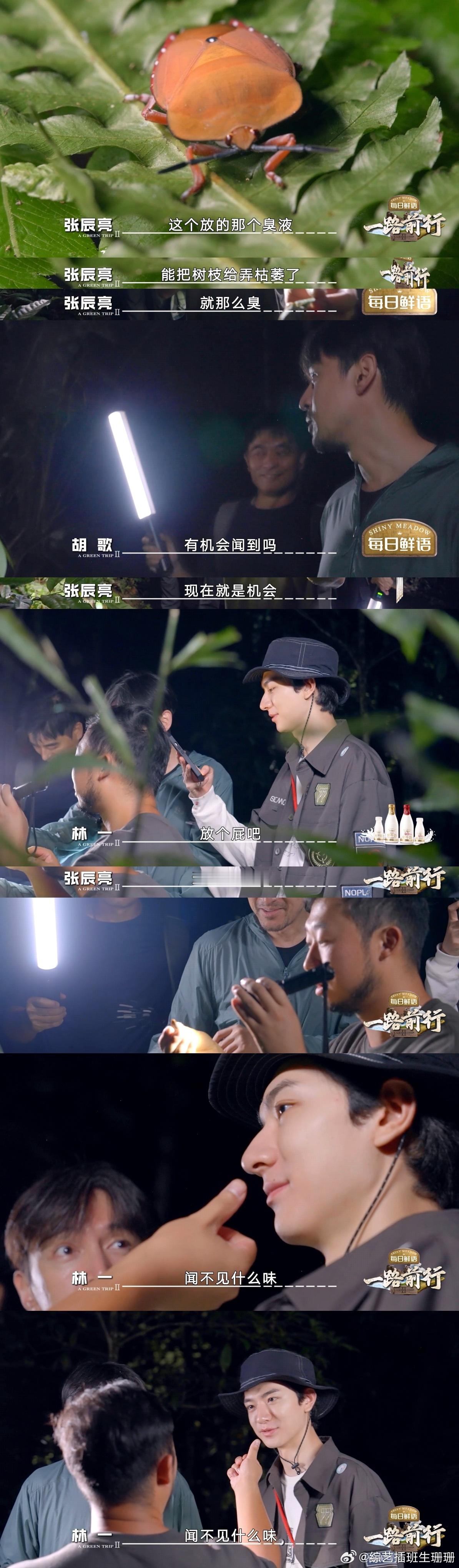 林一开口就是名场面 林一学鸡叫,好笑程度100%,林一对着孔雀学鸡叫,好笑程度1000%!喂鸡用“咕咕”,喂孔雀还“咕咕”,孔雀:别咕咕咕了,我不是鸡!从竹节虫交配为什么静止到让荔枝蝽放屁,林一的脑回路永远让人猜不透。才上了一期《一路前行》笑点也过于密集了,答应我下次还把林一带上!