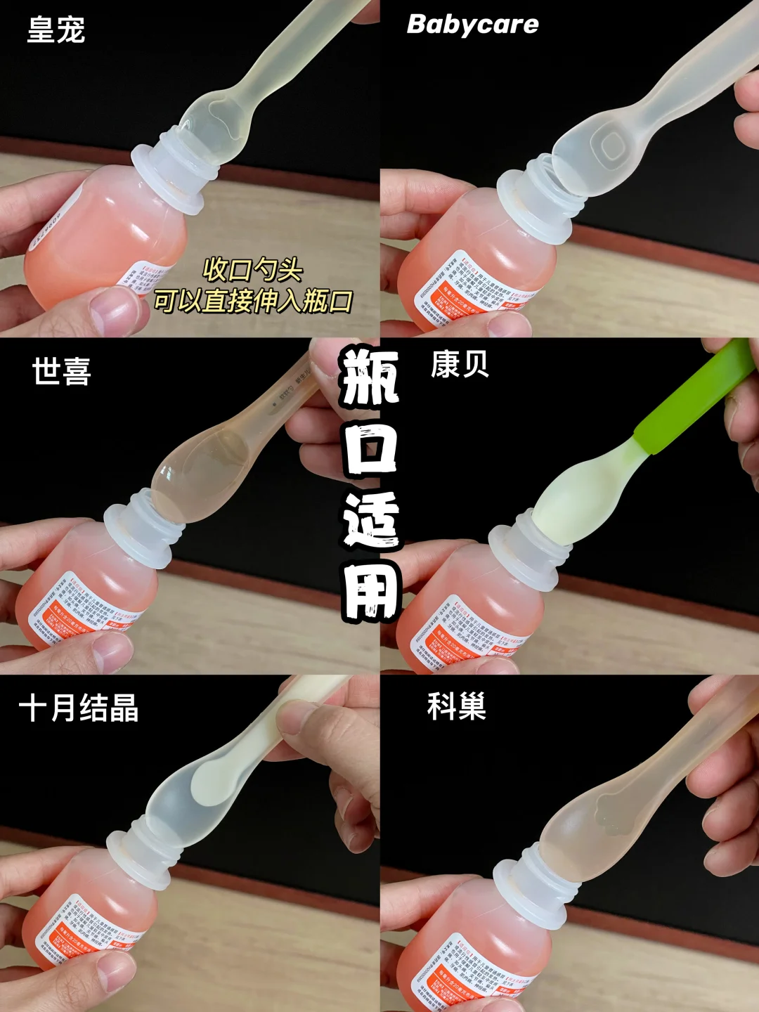 细长型且收口比较小的勺子更好喂🥄喂奶的时候不容易往外漏,过圆过硬的勺子宝宝真的不适用🥹难怪我以前用了好几款宝宝老是哭