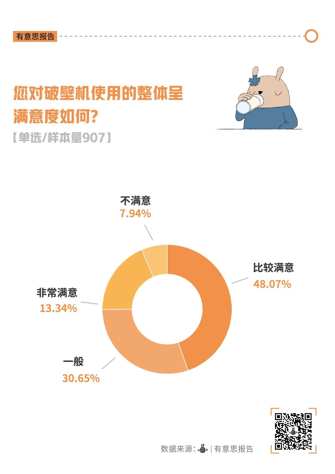 从市场数据看,自 2018 年高点以来,破壁机市场规模持续萎缩,2024 年电商全平台零售额 31.4 亿元,同比下降 14.4%。不过,业内人士认为,破壁机虽面临市场饱和与衰退,但技术和功能成熟,头部品牌持续优化创新,且具备功能集成化优势,随着 AI 智能化落地,仍有与厨房场景深入融合、回升购买力的潜力。在已拥有者中,近半数人对其使用感 “比较满意”,破壁机短期内或仍会在厨房占据一席之地。
