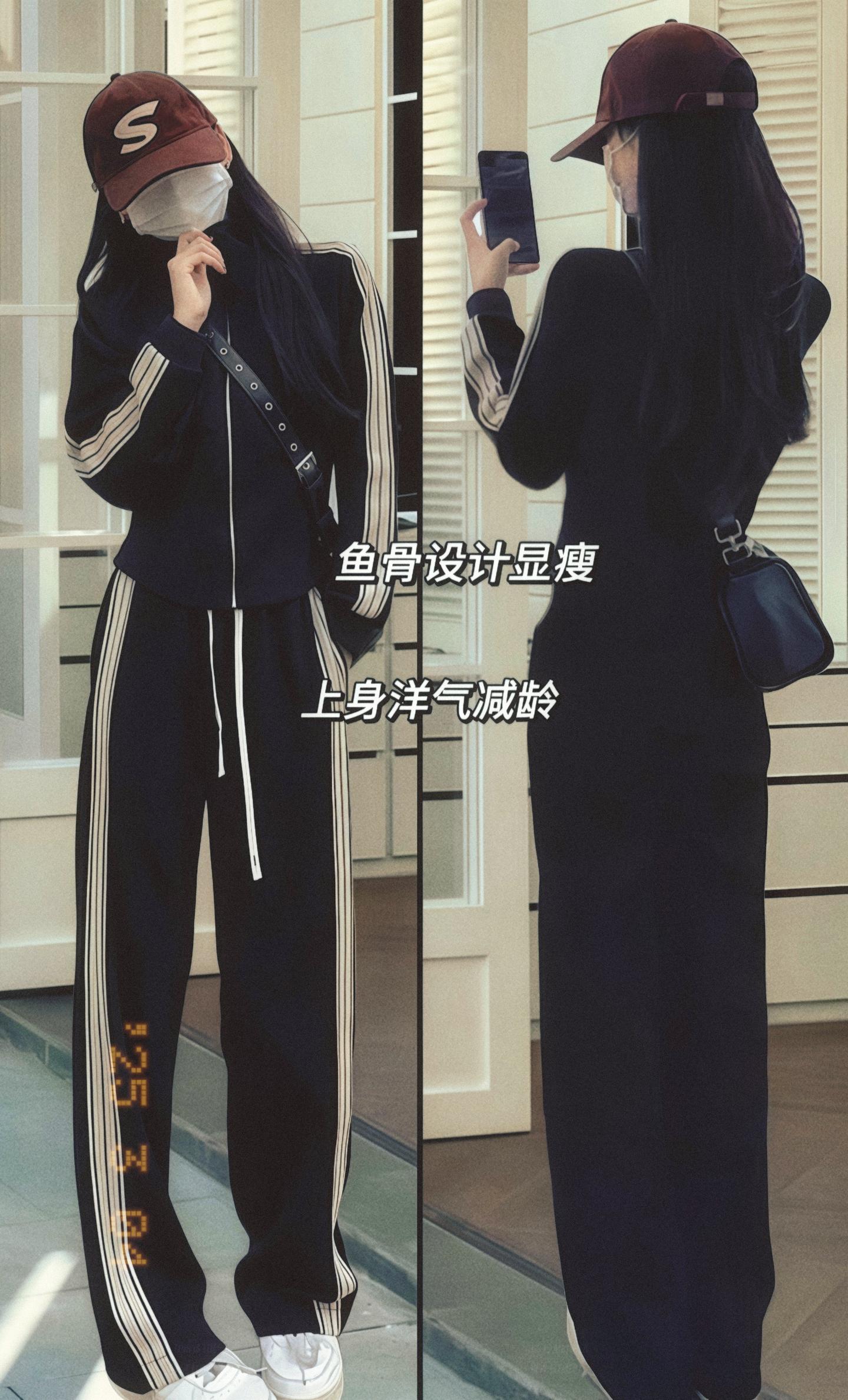 姐妹们~都去穿新款美式复古条纹休闲短外套+高级感高腰阔腿裤运动套装!条纹元素增添了一丝复古气息,休闲又不失时尚,给你带来不一样的穿搭感受!高腰阔腿裤修饰腿型,显高显瘦显腿长,展现迷人身姿!面料细腻舒适,让你穿上即有型又舒适!