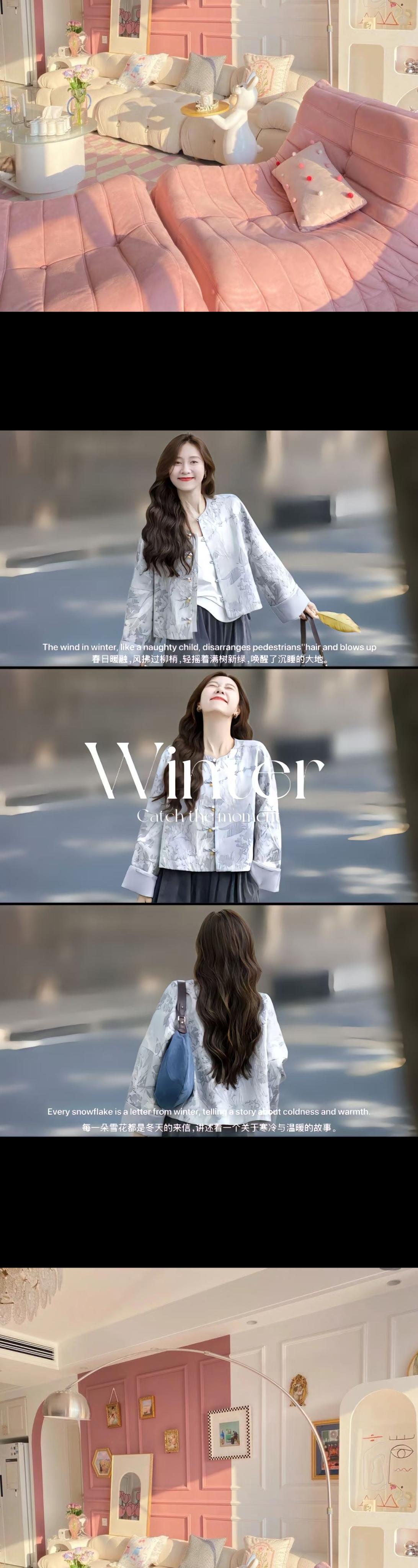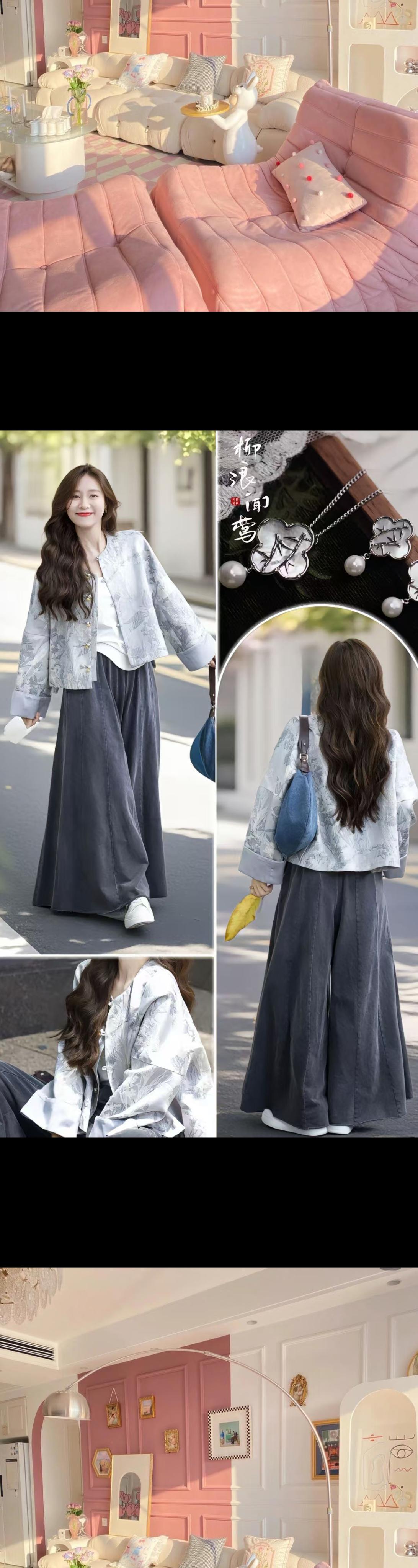 邂逅新中式 | 这个春天温柔又浪漫~爱上新中式只有0次和无数次~对这套新中式疯狂心动!!高级感满满的灰色圆领提花盘扣上衣精致又浪漫