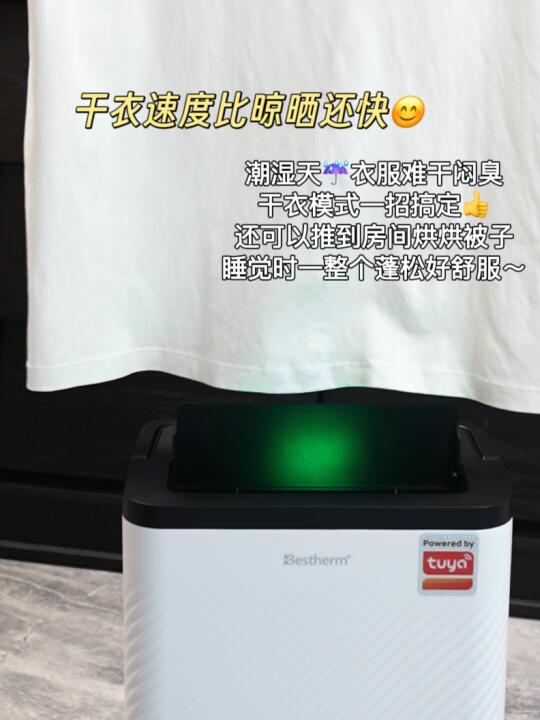 阴雨天内衣裤衣服难干,晚上把它推到晾衣架下面,打开干衣模式,早上可以干干爽爽直接穿出门!没有阳台晒被子的,回南天湿乎乎的被子也能轻松拿捏☀!