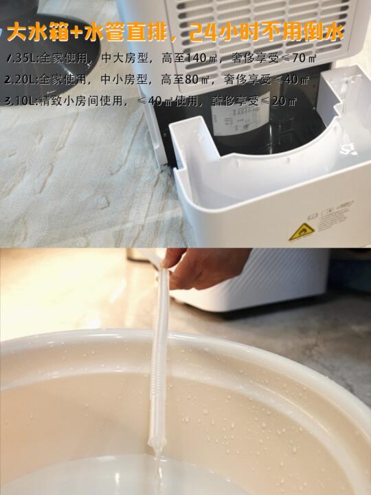 效果更好,面积更大,日除湿量高达70瓶500毫升纯净水,看着箱子里满满的水,真的感慨除湿能力很🐮